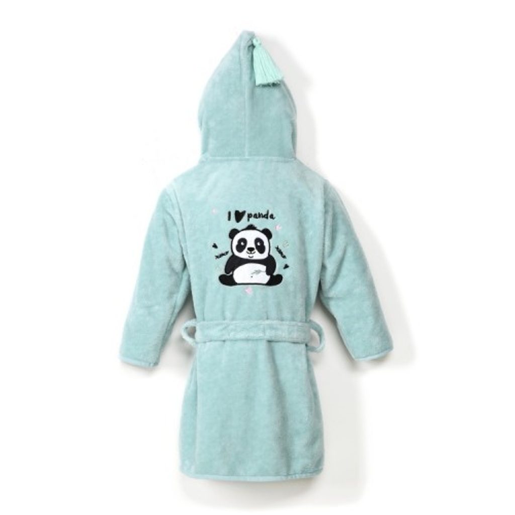 Luxusní dětský župánek z kolekce BAMBOO Soft, velikost "M", od La Millou - design MINT & I LOVE PANDA by Marta Zmuda Trzebiatowska. Kolekce BAMBOO Soft vyniká velmi specifickým materiálem, ze kterého je vyrobena... vnější strana z extrémně hebkého mikrovláknového plyše. Vnitřní strana z velmi jemného froté ze 100% bambusové viskózy, materiálu s mnoha výjimečnými užitnými vlastnostmi mezi které patří hlavně antibakteriální, antialergenní a antifungální vlastnosti. Vysoká savost, výjimečná měkkost a hebkost!