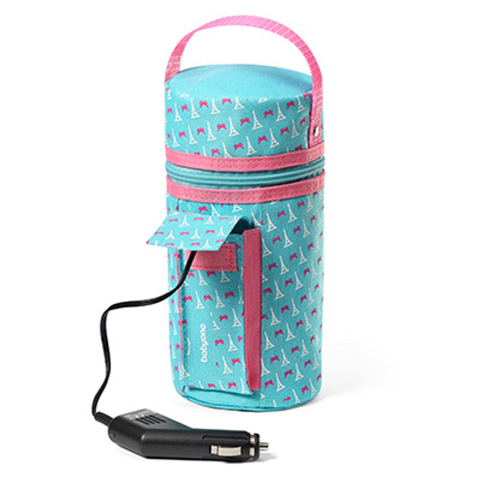 Cestovní ohřívač lahví do auta 2v1 značky BabyOno v TYRKYSOVO-RŮŽOVÉ barevné kombinaci umožňuje ohřát jídlo během cesty rychlým a jednoduchým způsobem.