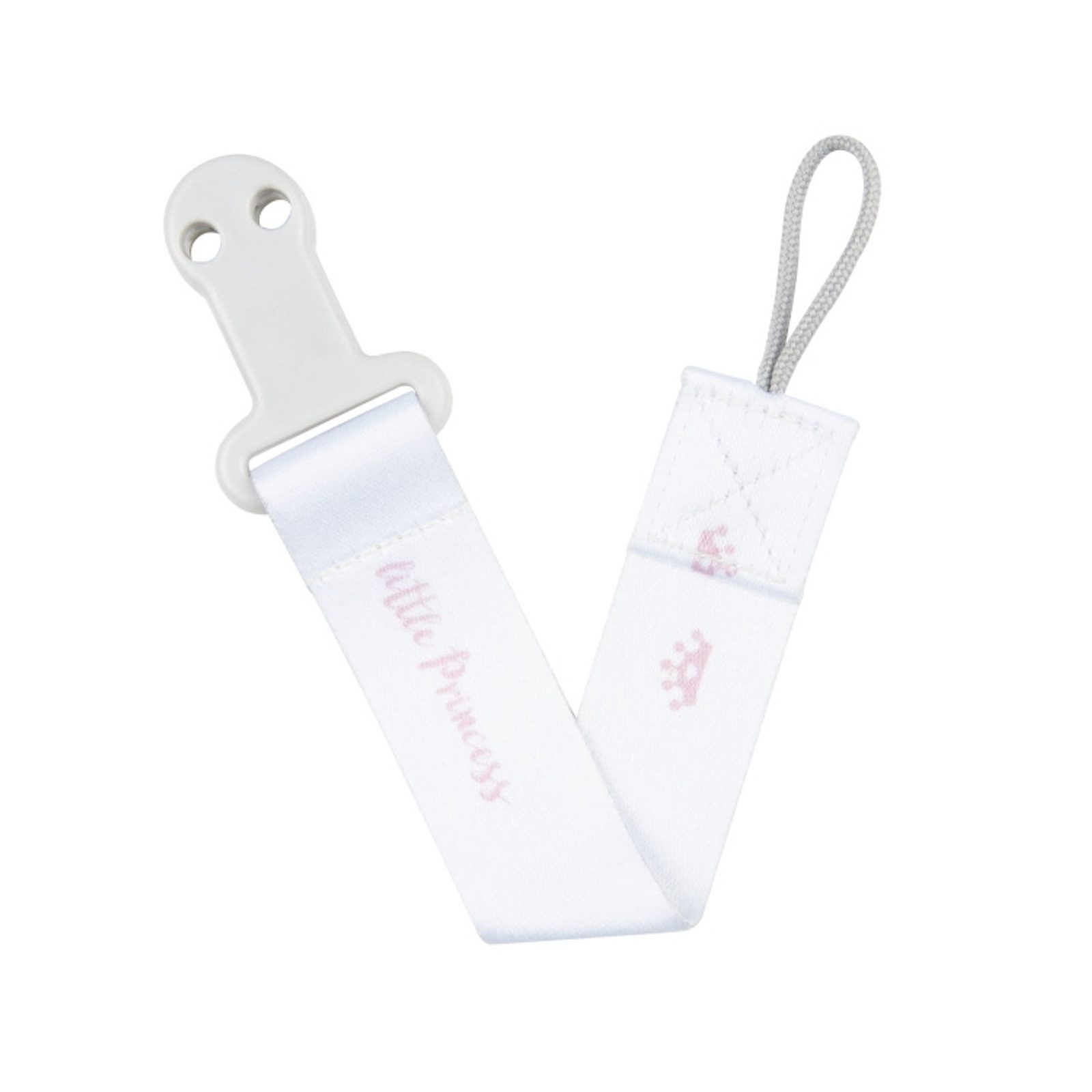 Stužka na dudlík s klipem značky Canpol babies z kolekce Royal Baby - barva RŮŽOVÁ. vhodný pro použití s dudlíky, které mají vnější úchytový kroužek, (nejen) značky Canpol babies, vyroben z kvalitních a bezpečných materiálů. BPA free. Vhodné pro děti: 0m+.