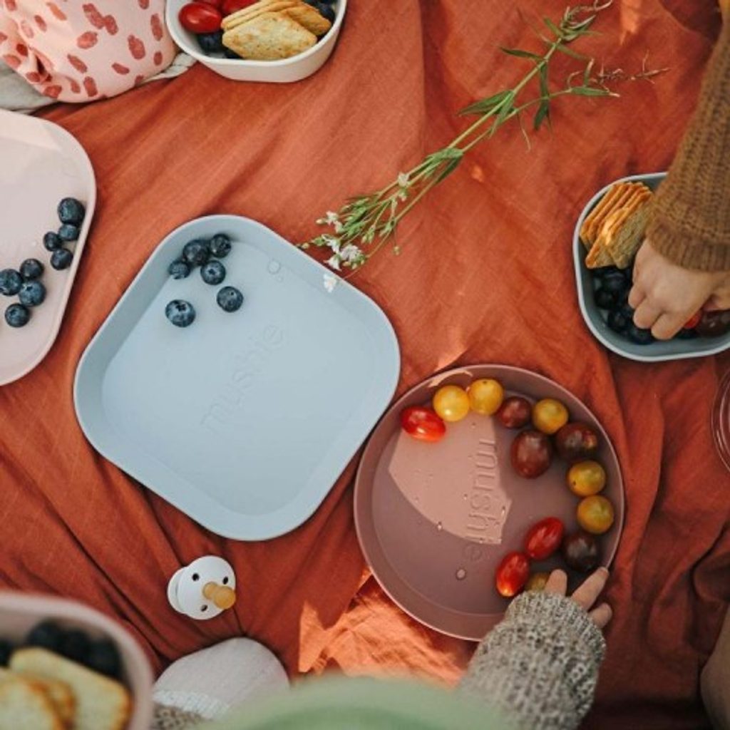 Sada 2ks kulatých talířů v odstínu SMOKE - další díl do skládačky ladících setů nádobí Mushie, které nabízí stylové a originální stolování.