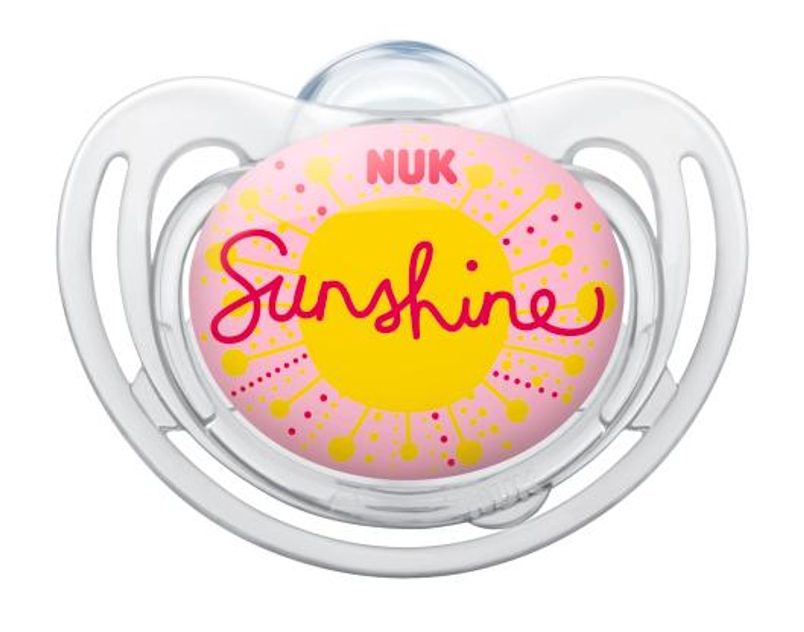 Dudlík značky NUK inovativní řady FREESTYLE - v moderním trendy designu s motivem SUNSHINE. Tento dudlík je určen dětem věku 6-18 měsíců, má ortodontický tvar sosáčku, který je vyroben ze silikonu. Dudlíky řady FREESTYLE byly speciálně navrženy jakoobvzláště šetrné k jemné pokožce dětského obličeje díky inovovanému tvaru vnější části a výrazně rozšířeným ventilačním otvorům (tj. dudlík má tak menší kontaktní plochy s pokožkou).