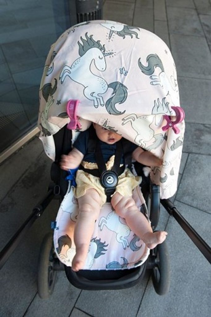 - přehoz / sluneční clona na kočárek - pro omezení/zastínění přímých slunečních paprsků do kočárku (důležité!!! - vždy je však nutné zabezpečit v kočárku dobrou ventilaci vzduchu/tj. nikdy nezakrývat kočárek úplně),