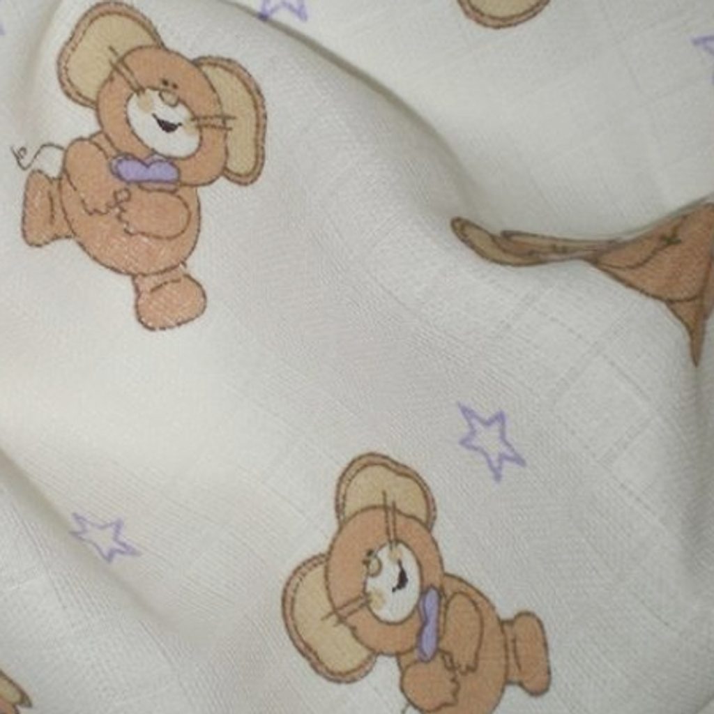 Bavlněná dětská plena o rozměru 70x70cm s potiskem MYŠKY S FIALOVOU MAŠLÍ. Jedná se o tetra plenu - tj. plena je tkaná v klasické dutinné vazbě s typickou čtvercovou strukturou. Vyrobená ze 100% bavlny. Plena má 2 okraje pevně vytkávané a 2 pevně založené okraje (což minimalizuje možnost třepení okrajů při praní a jejím používání).