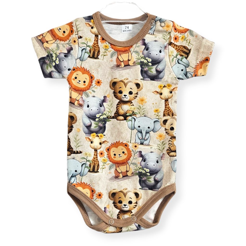 Kojenecké body s krátkým rukávem od Le Bebe design Zvířátka za volantem: