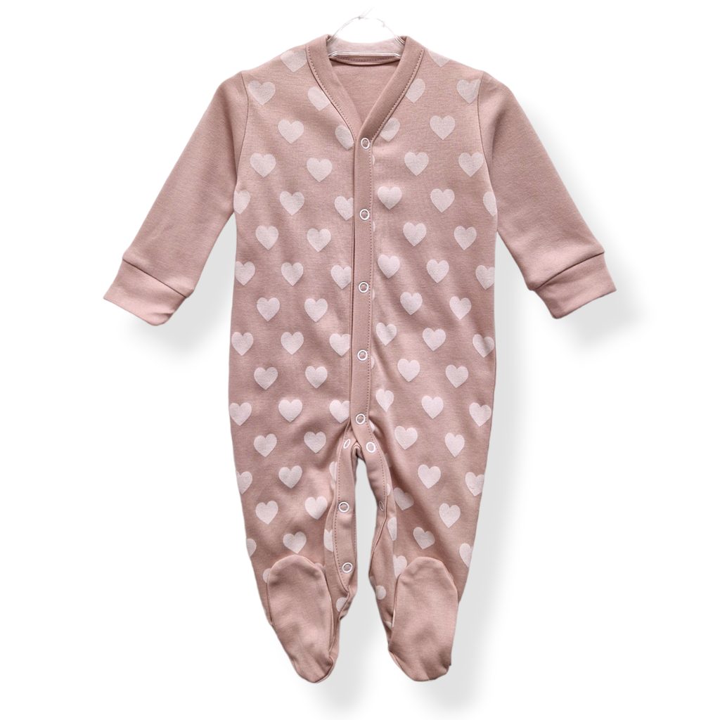 Kojenecký overal z kolekce Love značky Lili Royal Baby - barva PUDROVĚ RŮŽOVÁ: se vzorem srdíček, zapínání středem těla a mezi nožkama na patentky, měkký a hebký bavlněný jersey úplet, materiál: 100% bavlna, vyrobeno v EU. Orientační rozměry*: vel.56 - délka (rameno-pata) 46cm/ šířka hrudníku…