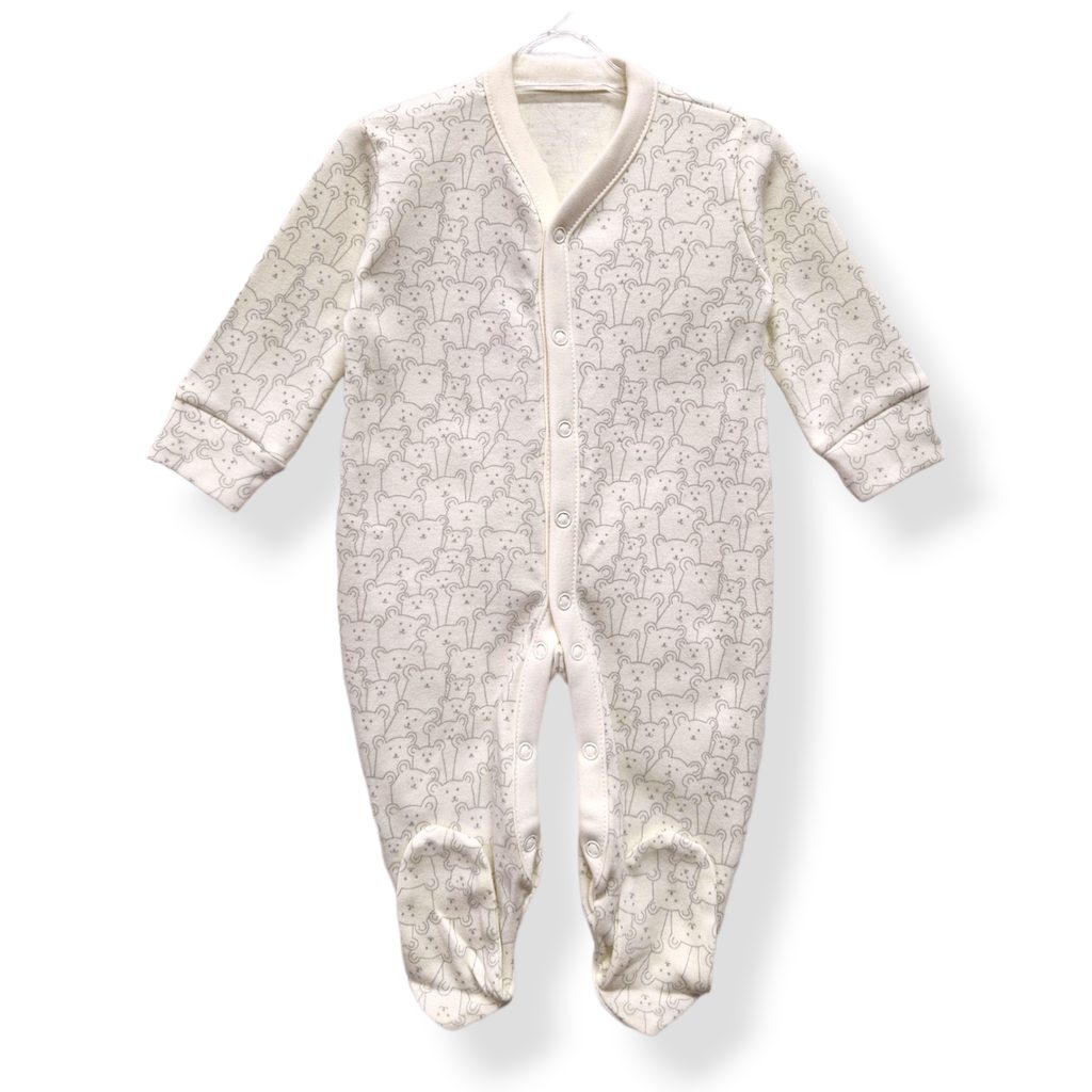 Kojenecký overal z kolekce Teddies značky Lili Royal Baby - barva KRÉMOVÁ: se vzorem medvídků, zapínání středem těla a mezi nožkama na patentky, měkký a hebký bavlněný jersey úplet, materiál: 100% bavlna, vyrobeno v EU. Orientační rozměry*: vel.56 - délka (rameno-pata) 46cm/ šířka hrudníku 23cm/…