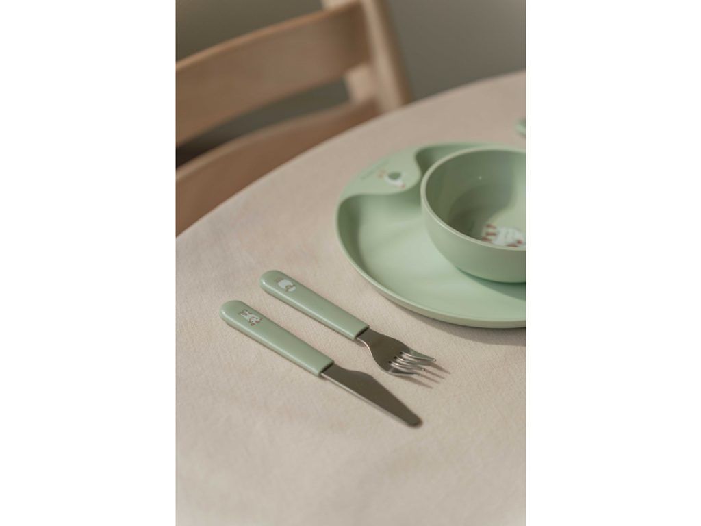 Dětská 6-dílná jídelní sada značky Little Dutch z kolekce Little Farm (Farm) je ideální pro děti, které se učí jíst samostatně. Nádobí je z velmi lehkého materiálu - díky lehkosti může dítě snadno a pohodlně jíst samo. Nerozbitnost, tvar a zaoblené hrany zajišťují bezpečnost - vy se tak nemusíte strachovat, že si Váš mrňousek při jídle ublíží. Stylový set obsahuje: