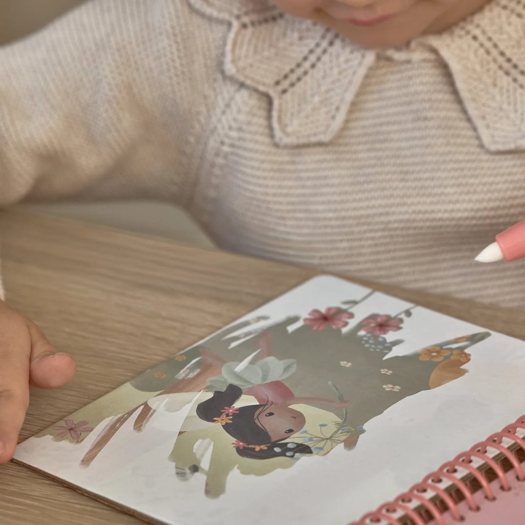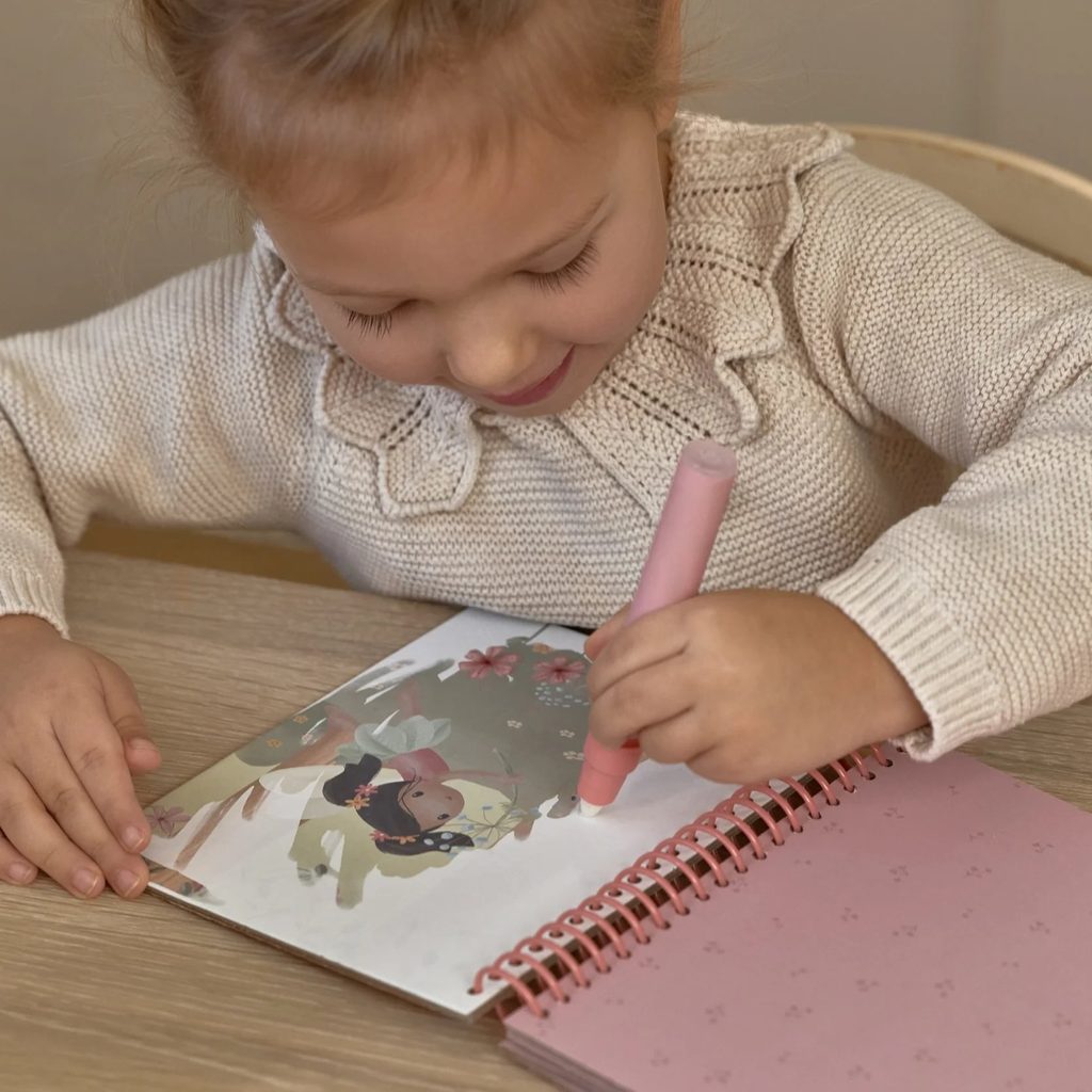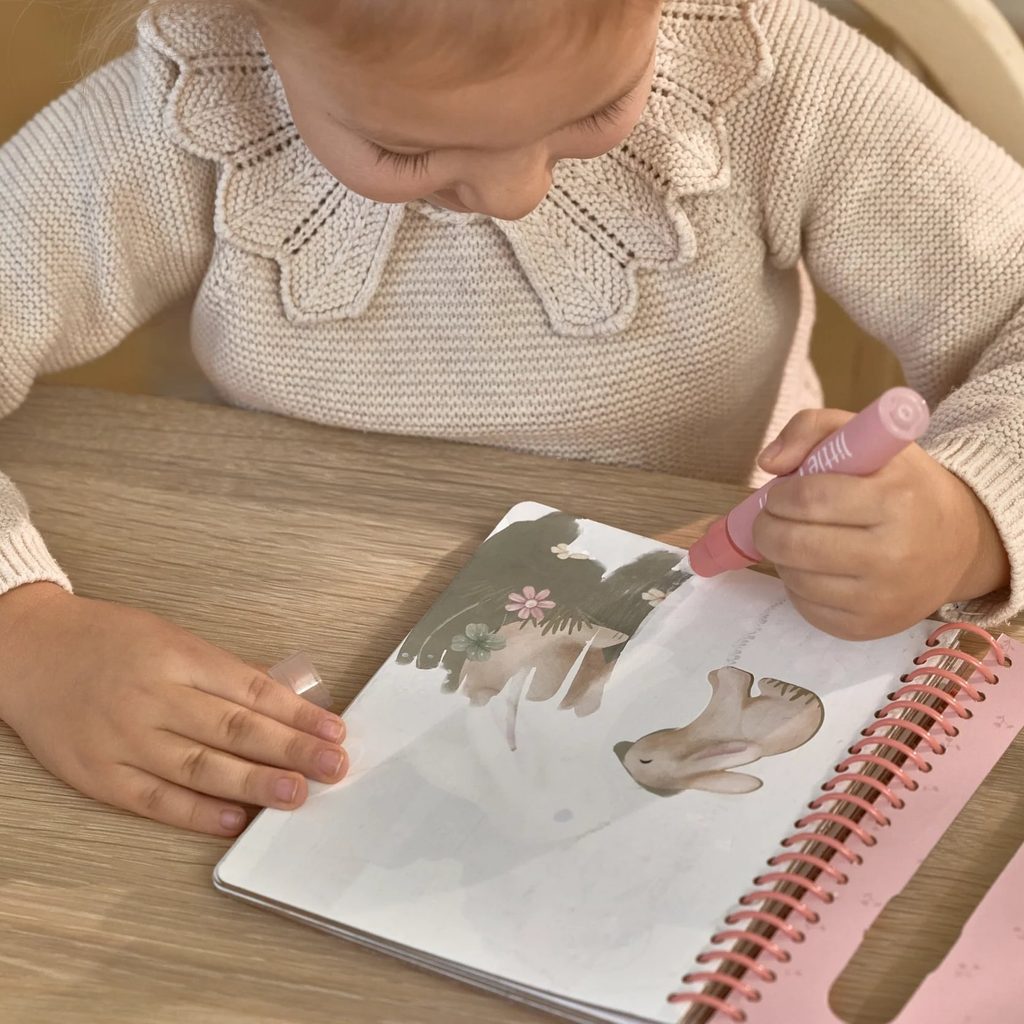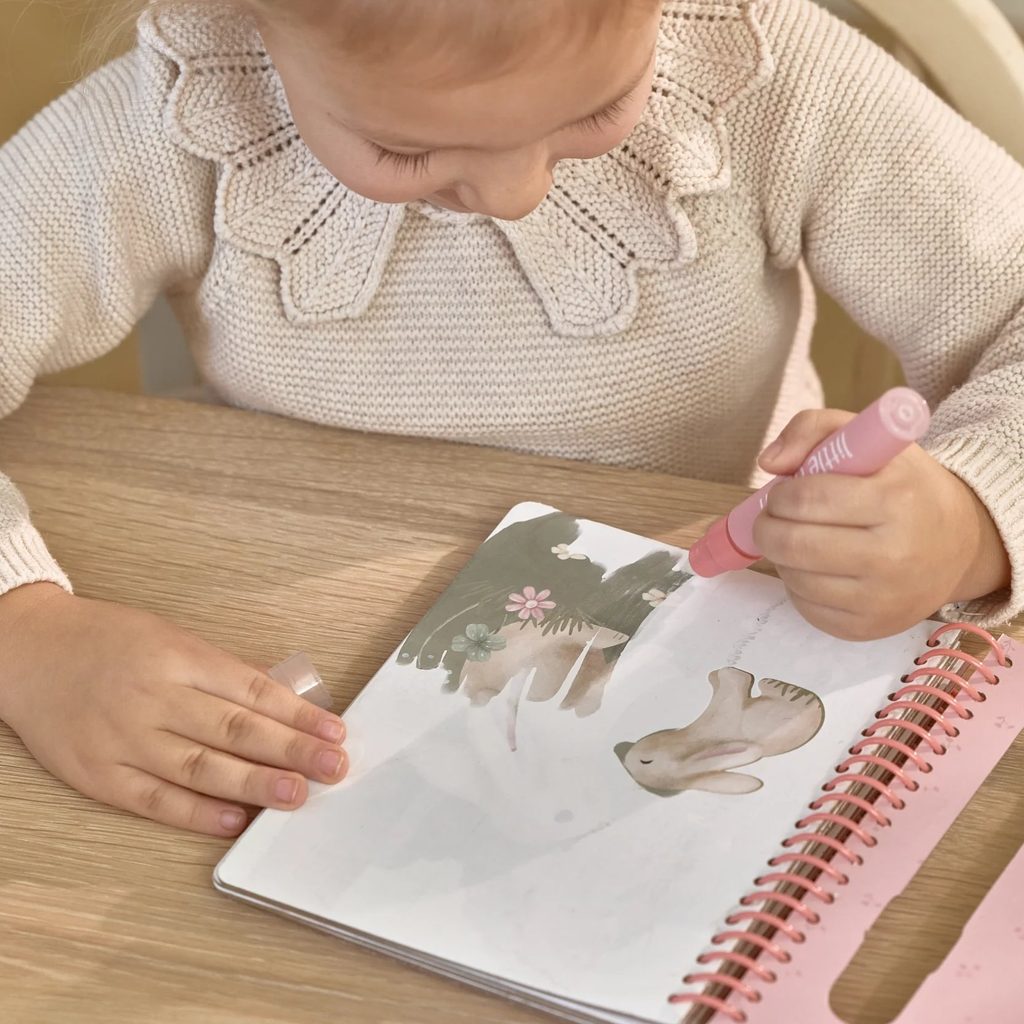 Kniha kouzlení s vodou Rosa Fairy Garden holandské značky Little Dutch. knížka skrývá na svých stránkách ilustrace holčičky pohádkových víl a zvířátek z lesa, ilustrace se odkrývají s pomocí vodního fixu, který je součástí knížky, fix stačí naplnit vodou a malému umělci či umělkyni se během…