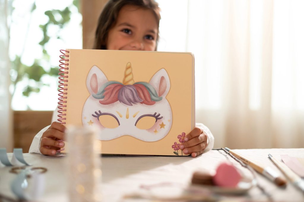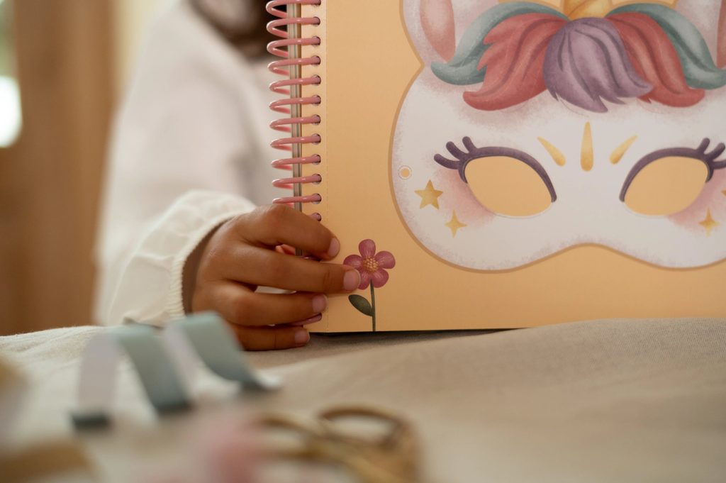 Kreativní kniha dětských vystřihovánek na téma veselé masky Rosa značky Little Dutch: