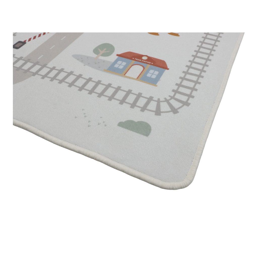Koberec s měkkým povrchem v jemných pastelových barvách nabízí pohodlné a bezpečné místo pro hraní a bude i krásným doplňkem do dětského pokoje. Díky protiskluzové vrstvě dobře drží na podlaze a podporuje i motorický rozvoj dítěte.