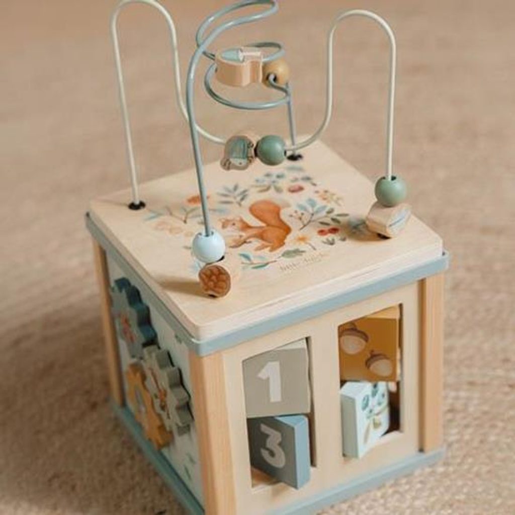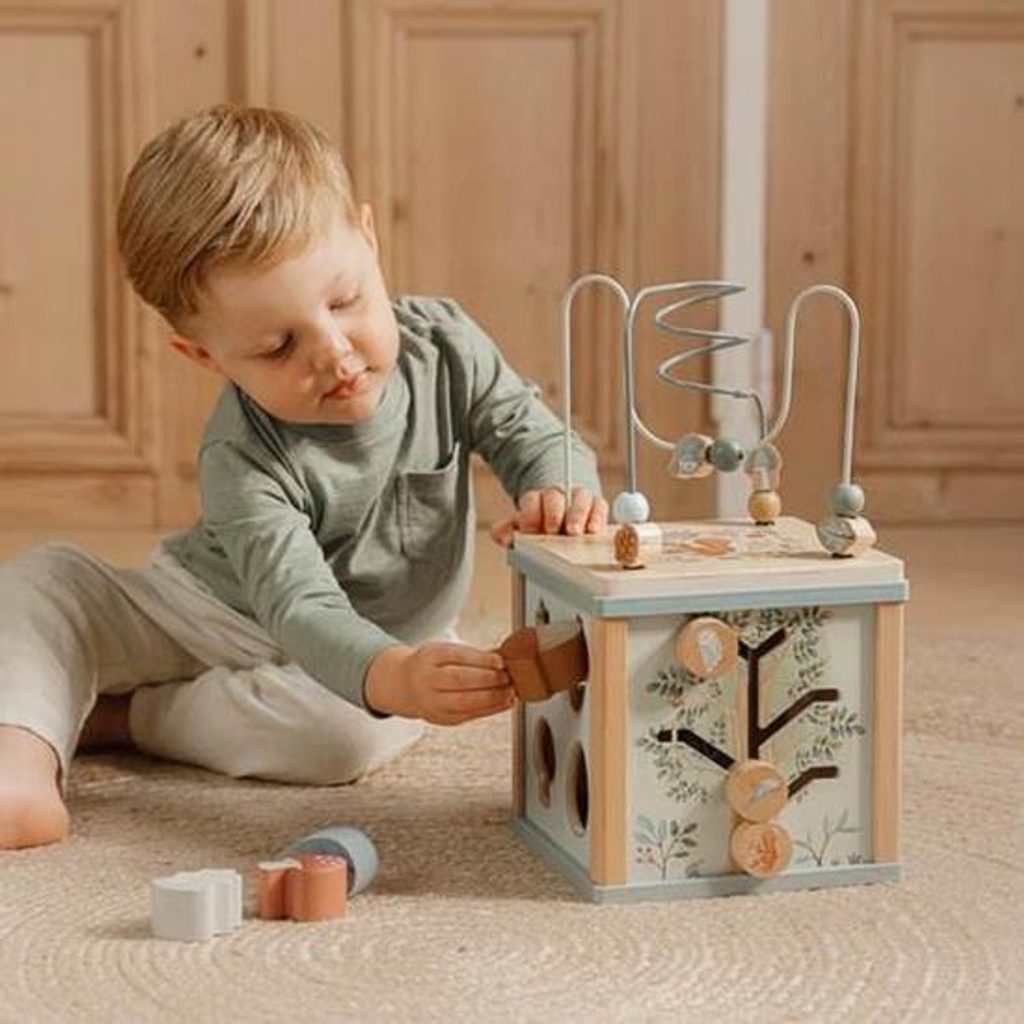 Dřevěná motorická kostka s aktivitami z kolekce Forest Friends holandské značky Little Dutch.