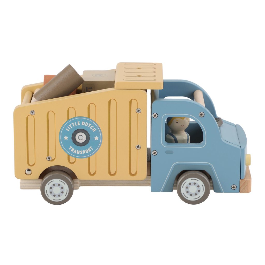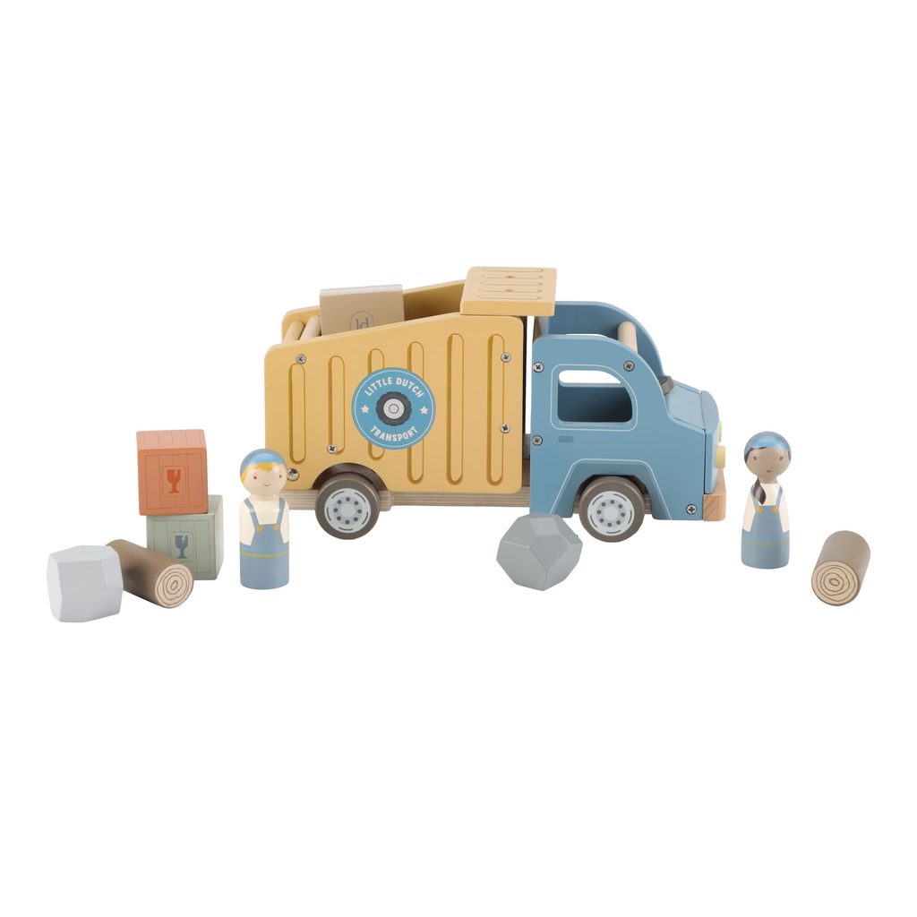 Náklaďák se sklápěčkou Little Dutch je ideální hračka pro malé stavitele, kteří chtějí převážet, vykládat a vymýšlet nové příběhy. Kvalitní dřevěné provedení s důrazem na detail zajišťuje dlouhou životnost a hodiny kreativní hry. Auto má funkční sklápěcí korbu, díky které děti snadno naloží a vyloží svůj náklad. Součástí balení jsou dva řidiči a různé typy nákladu – klády, kameny a dřevěné bedýnky. Děti tak mohou vymýšlet stále nové příběhy, rozvíjet fantazii a procvičovat jemnou motoriku.