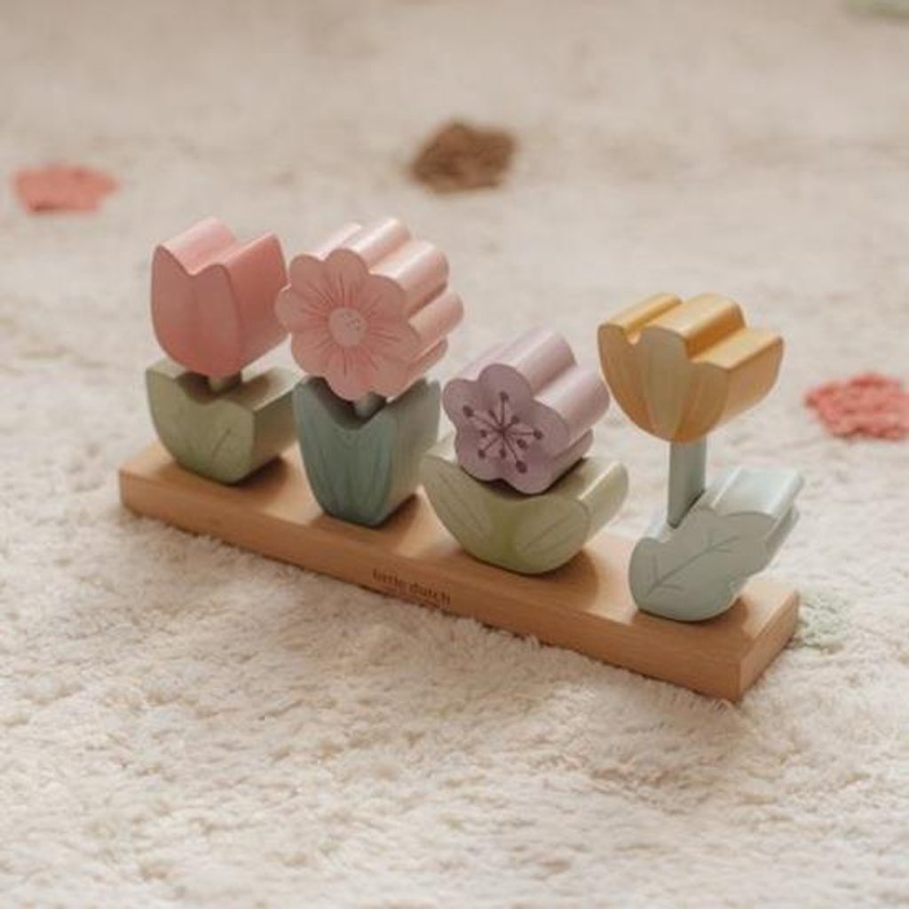 Dřevěné Skládací květiny z kolekce Fairy Garden holandské značky Little Dutch. hra podporuje rozvoj motoriky a dětské fantazie, květiny jsou tvořeny ze dvou dílků, které se postupně navlékají na stonek na základně, listy i květiny lze různě kombinovat a tím vytvořit pokaždé jiné varianty květin,…