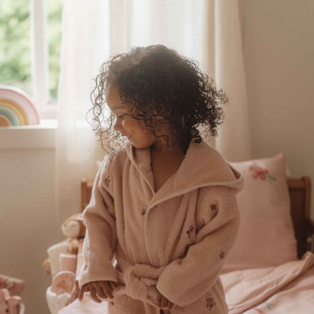 Dětský froté župánek s kapucí značky Little Dutch design Fairy Blossom: měkký froté župan s kapucí, ideální pro zahřátí a snadné osušení vašeho aktivního batolete po koupeli nebo plavání, s vyšívanými kytičkami se zapíná s pomocí zavazovacího pásku, součást designové kolekce textilu, hraček a…