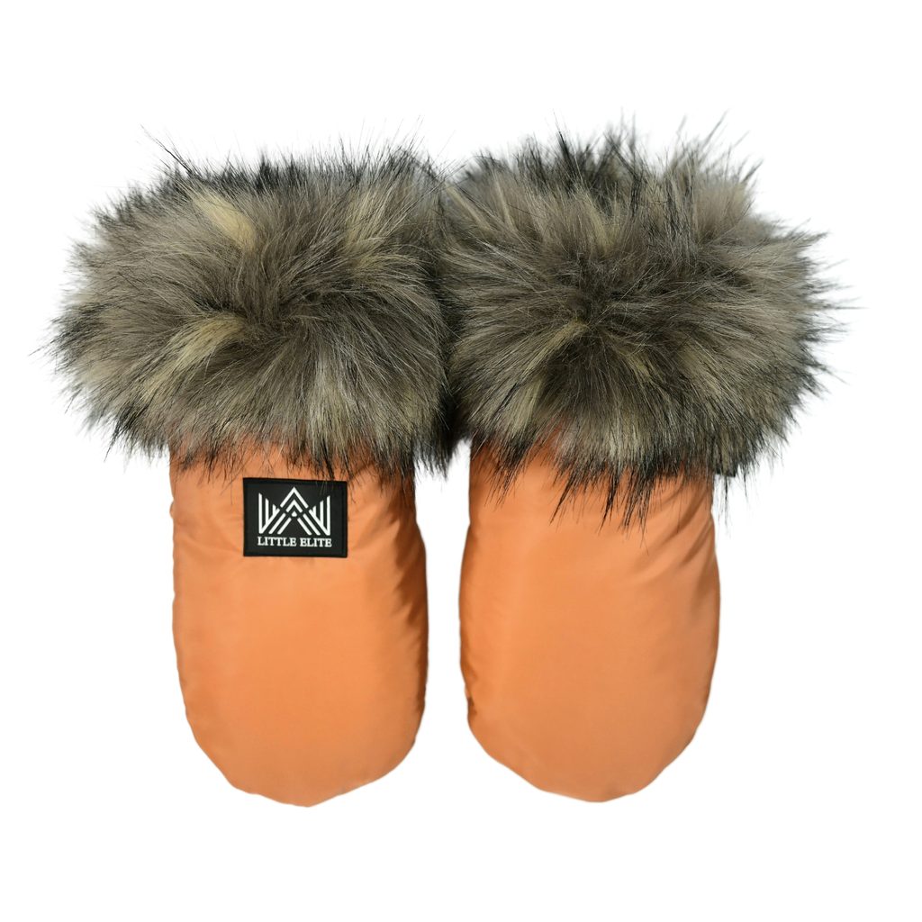 Hřejivé rukavice na kočárek s kožíškem značky Little Elite – barva: AMBER (jantarová): ochrání Vaše ruce před chladem, větrem, sněhem a deštěm, univerzální - pro kočárky s celistvou (nedělenou) rukojetí i oddělenými rukojeťmi (golfky), zdobené umělou kožešinou (pevně všitá), vnější povrch –…