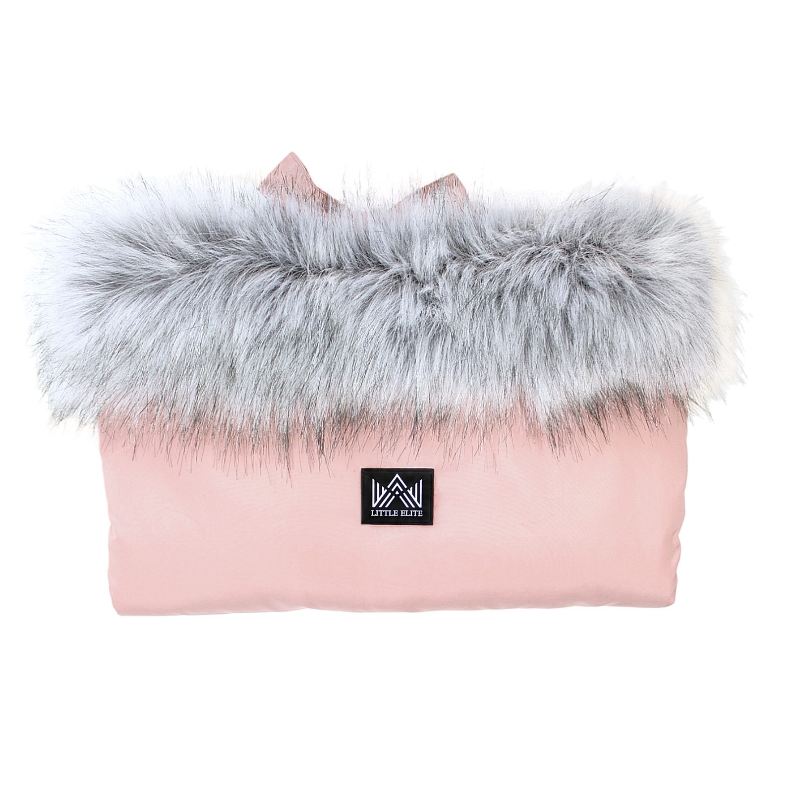 Hřejivý rukávník na kočárek s kožíškem značky Little Elite – barva: PUDROVĚ RŮŽOVÝ s šedým kožíškem: ochrání Vaše ruce před chladem, větrem, sněhem a deštěm, pro kočárky se standartní celistvou (nedělenou) rukojetí, prostorný - vhodný pro ženské i mužské ruce, zdobený umělou kožešinou (pevně všitá…