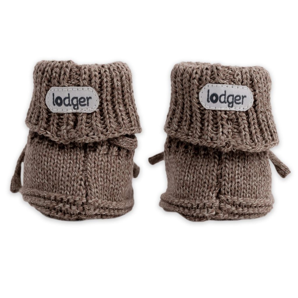 Pletené capáčky pro miminko značky Lodger - odstín Buffalo (hnědý melír). vhodné od narození do cca 6 měsíců, pružné díky bavlněnému úpletu, krásně přiléhají k nožičkám, snadné nasazování a sundávání, roztomilé tkaničky. Materiál: 100% bavlna.
