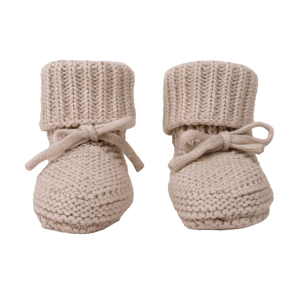 Pletené capáčky pro miminko značky Lodger - odstín Birch (béžová). vhodné od narození do cca 6 měsíců, pružné díky bavlněnému úpletu, krásně přiléhají k nožičkám, snadné nasazování a sundávání, roztomilé tkaničky. Materiál: 100% bavlna.