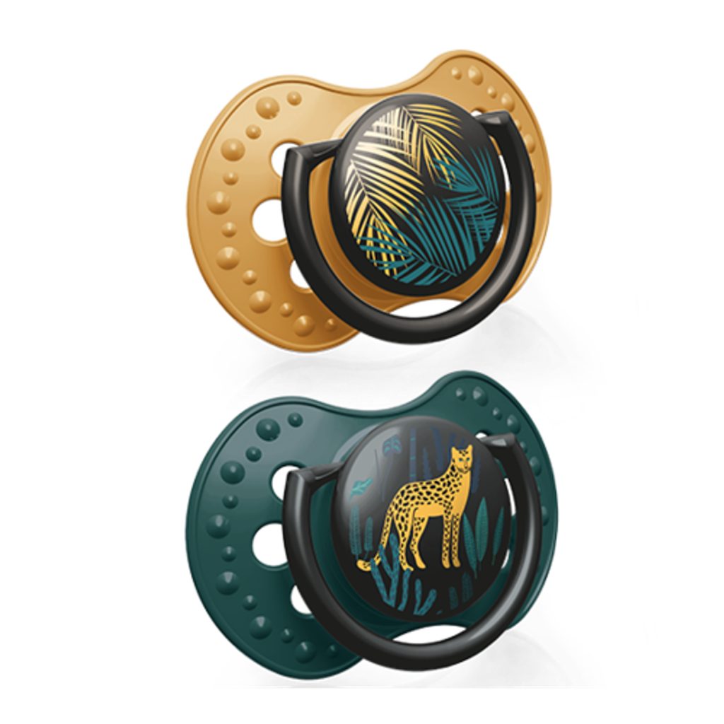 Sada 2ks dudlíků značky LOVI z kolekce Jungle Vibes. Velikost 3-6m. Design: BOY (Petrolejová/Hořčice): se silikonovou, dynamickou savičkou - která se protahuje shodně s rytmem sání dítěte podobně jako mateřská bradavka, profilovaná vnější část, ventilační otvory ve vnější části dudlíku, vnější…