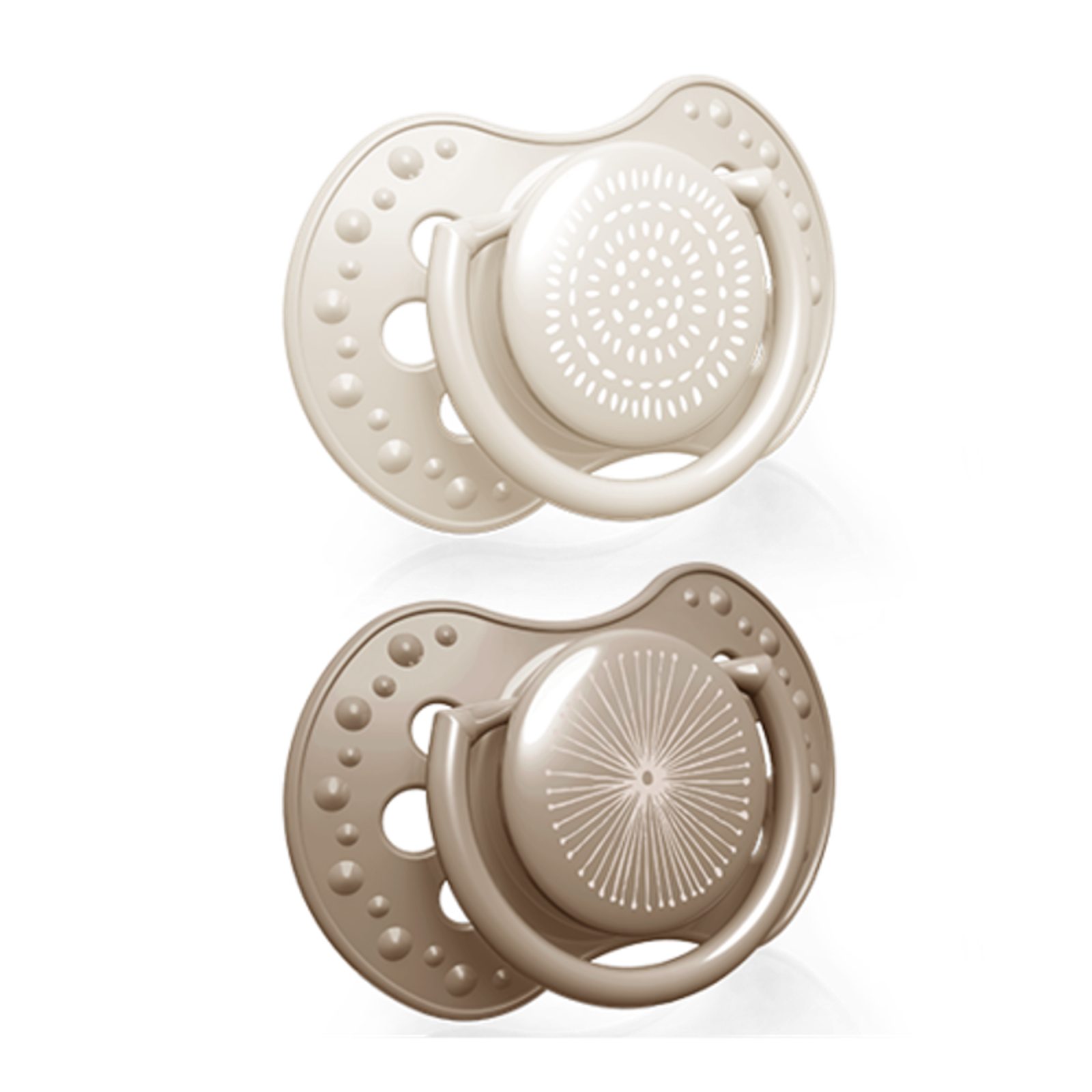 Sada 2ks dudlíků značky LOVI z kolekce Harmony. Velikost 6-18m. Design: Holka (béžová kombinace): se silikonovou, dynamickou savičkou - která se protahuje shodně s rytmem sání dítěte podobně jako mateřská bradavka, profilovaná vnější část, ventilační otvory ve vnější části dudlíku, vnější úchytový…
