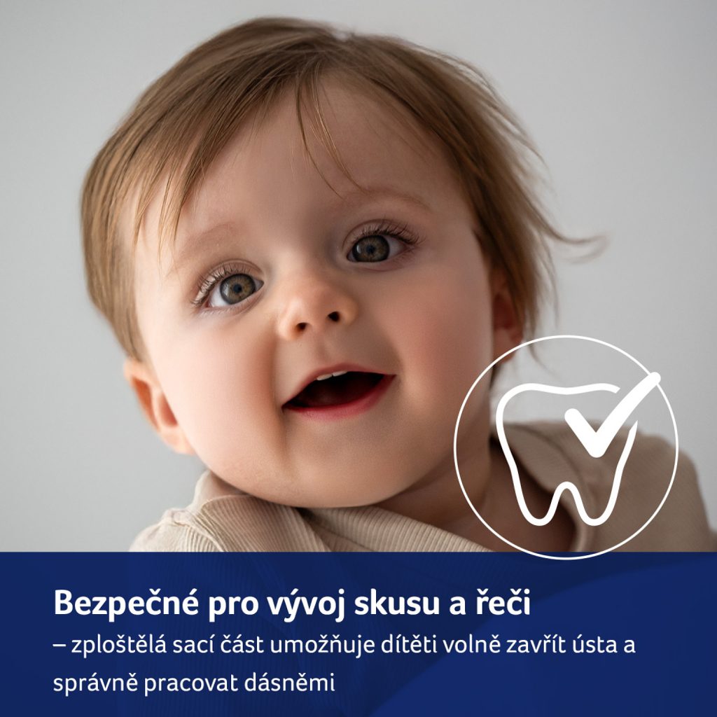 Špička je vyrobena z odolného silikonu, který se během používání nedeformuje v ústech dítěte.