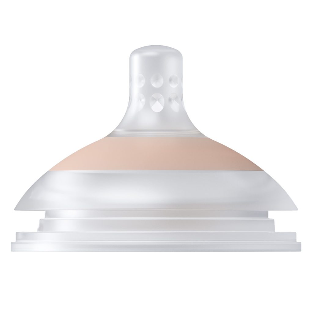 Široký, profilovaný tvar po vzoru mamčiných prsou a dokonalé proporce zajišťují, že ústa dítěte jsou umístěna ve správném úhlu, rty jsou pevně sevřené a dítě může volně dýchat nosem, což snižuje riziko vzniku koliky.