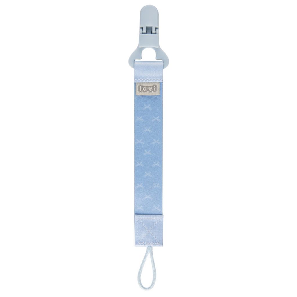 Klip na dudlík se stuhou značky LOVI z kolekce Baby Shower design: BOY (modrá verze).