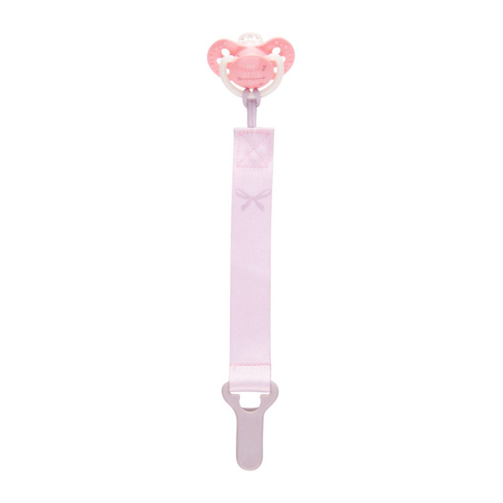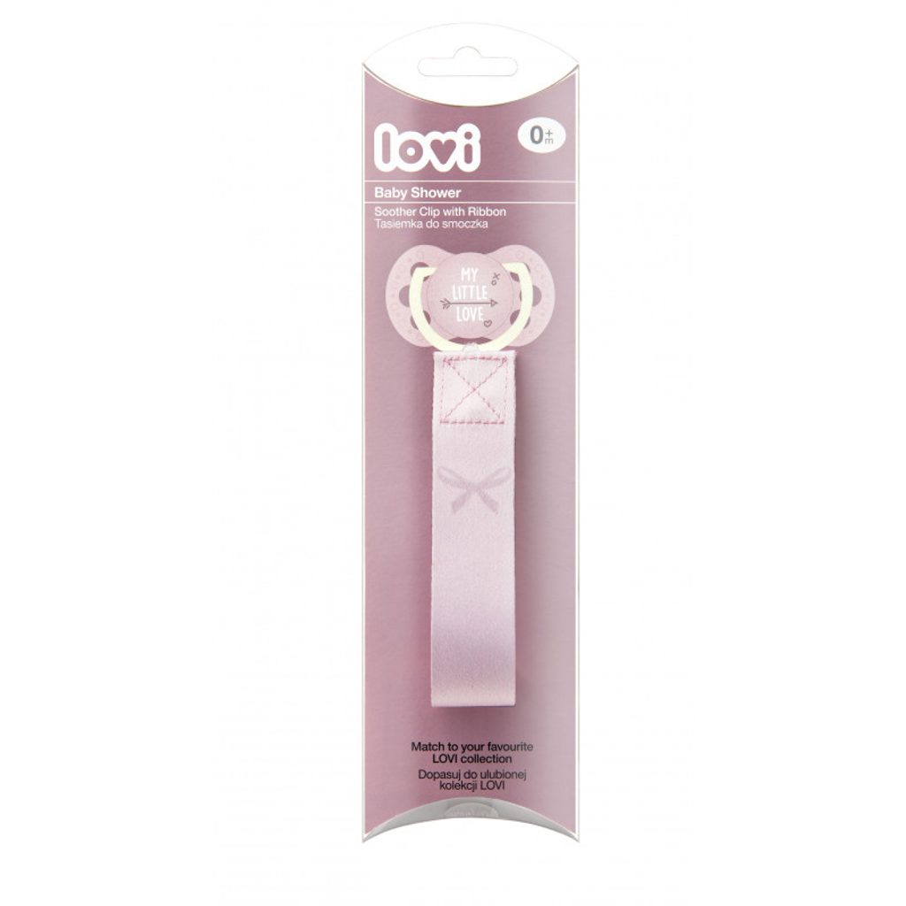 Stylový klip na dudlík "STUHA" značky LOVI z kolekce Baby Shower, design: GIRL (růžová kombinace).