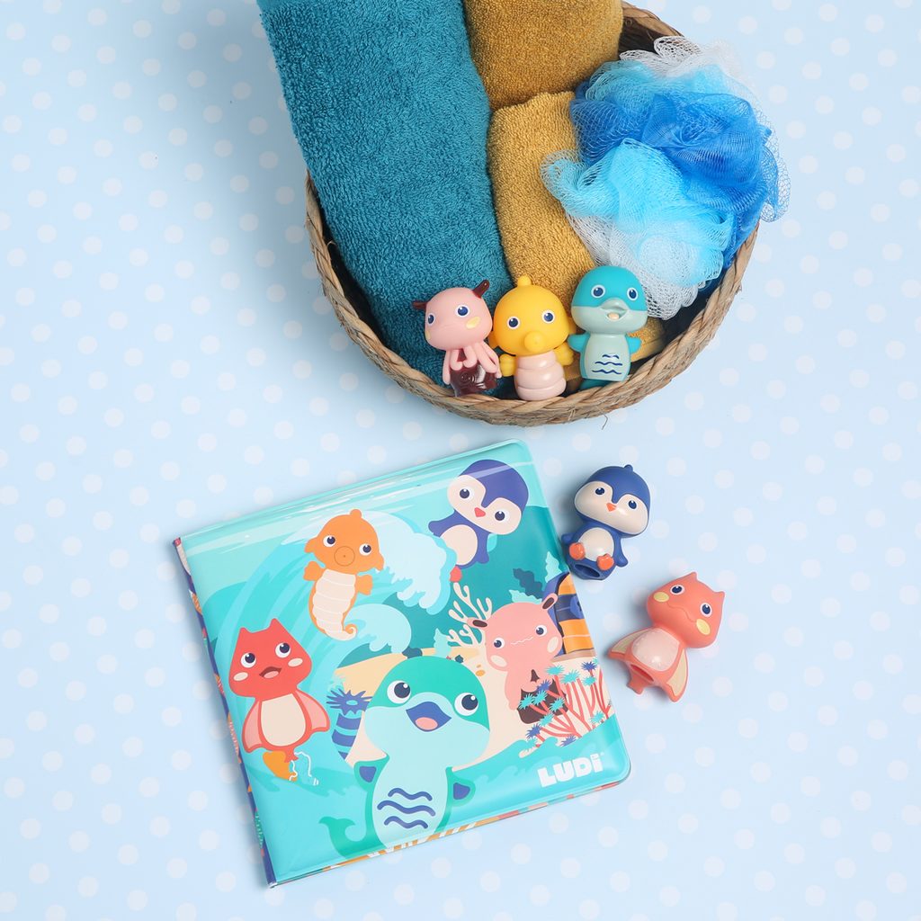 Kouzelná knížka do koupele s prstovými maňásky značky Ludi přenese děti pod hladinu moře, kde je čekají barevné ilustrace, veselá zvířátka a neomezený prostor pro fantazii. Ideální do vany, bazénu i mimo vodu – na hraní není nikdy špatný čas!