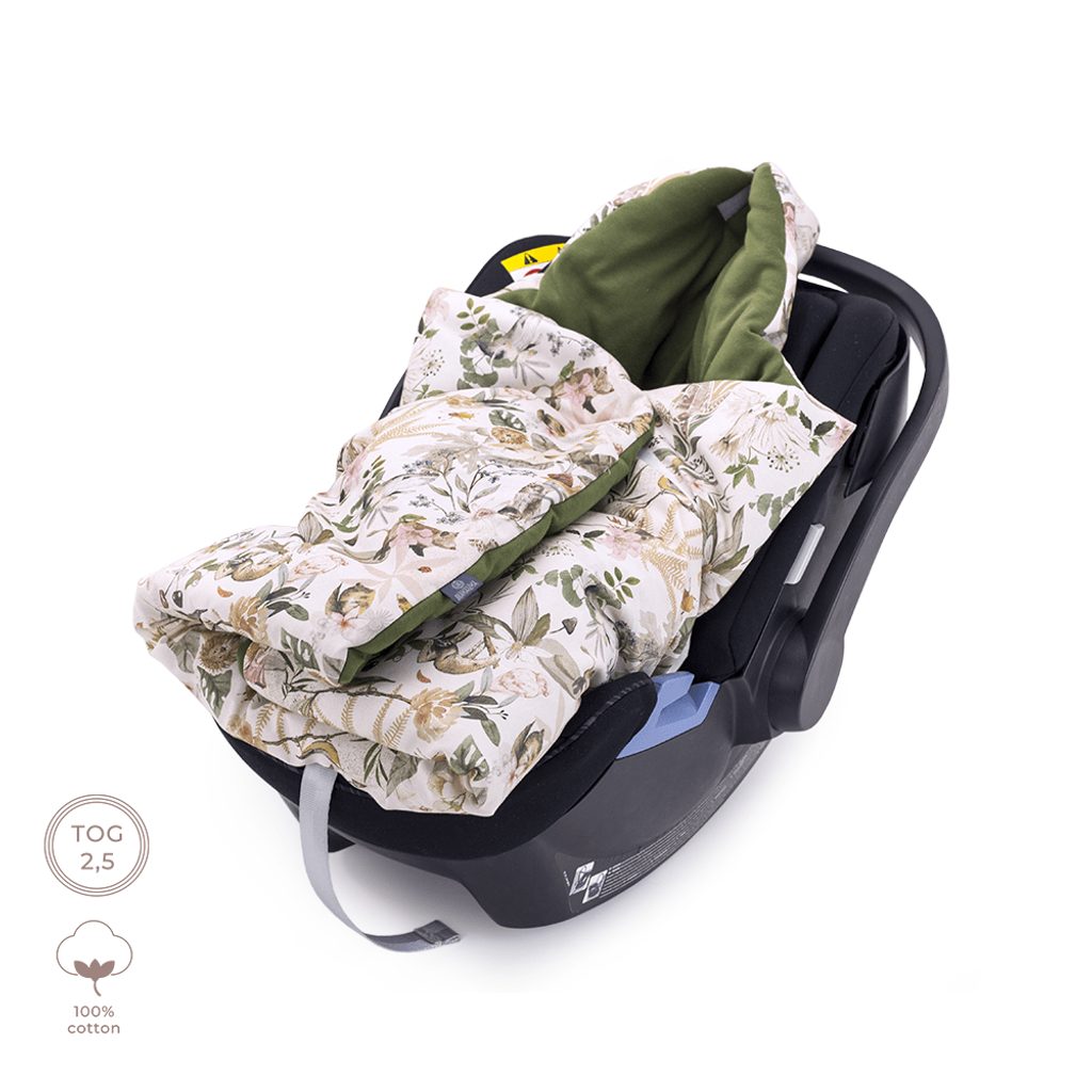 Zateplená deka/zavinovačka do autosedačky BEST MEMORIES - jedinečná, autorská kolekce značky Makaszka. Nejnovější provedení zavinovačky - nová řada Cotton v kombinaci s vylepšenými otvory na bezpečnostní pásy!