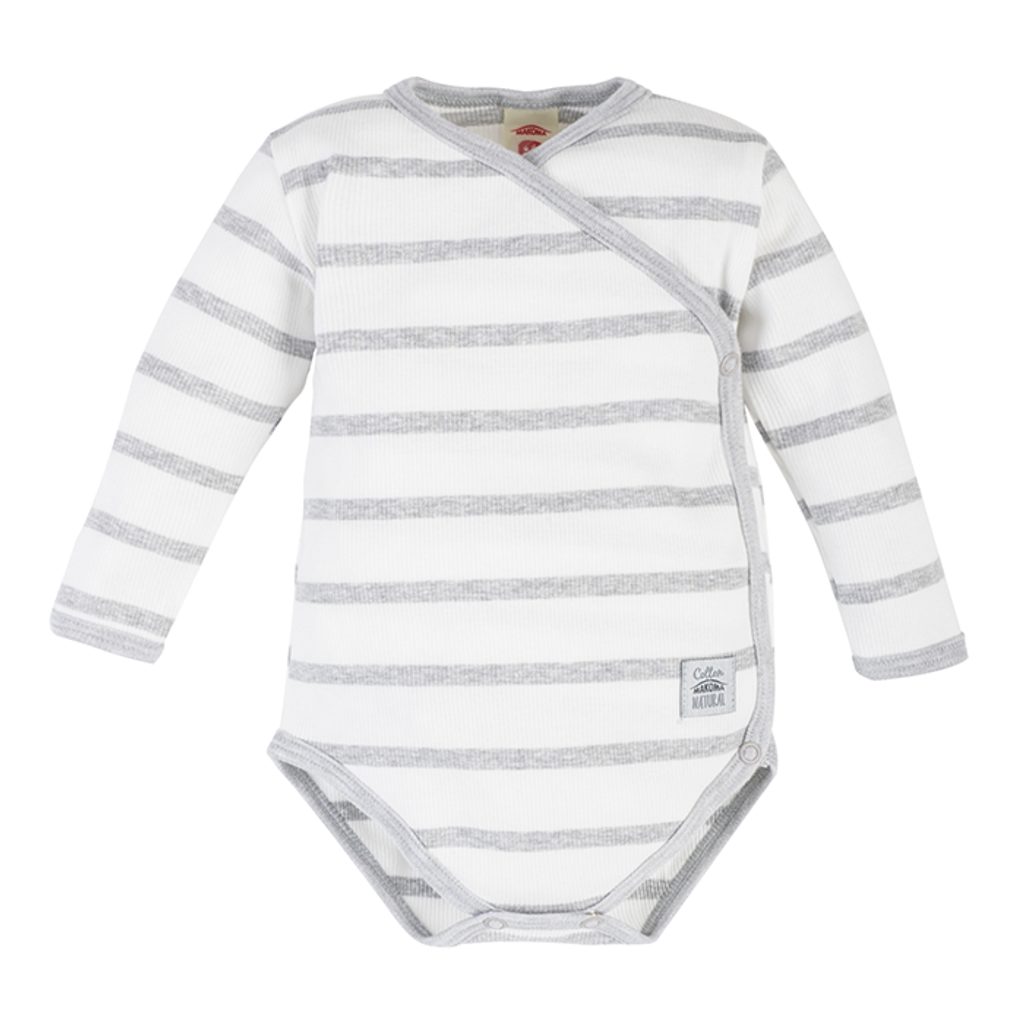 Zavinovací body s dlouhým rukávem z kolekce Greco značky Makoma. Design: White Stripes (bílo-šedé proužky).