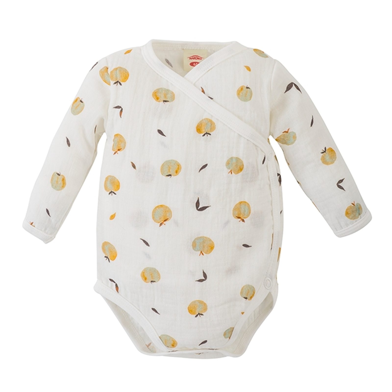 Mušelínové zavinovací body s dlouhým rukávem značky Makoma z prémiové kolekce Just Muslin - vzor Apples: