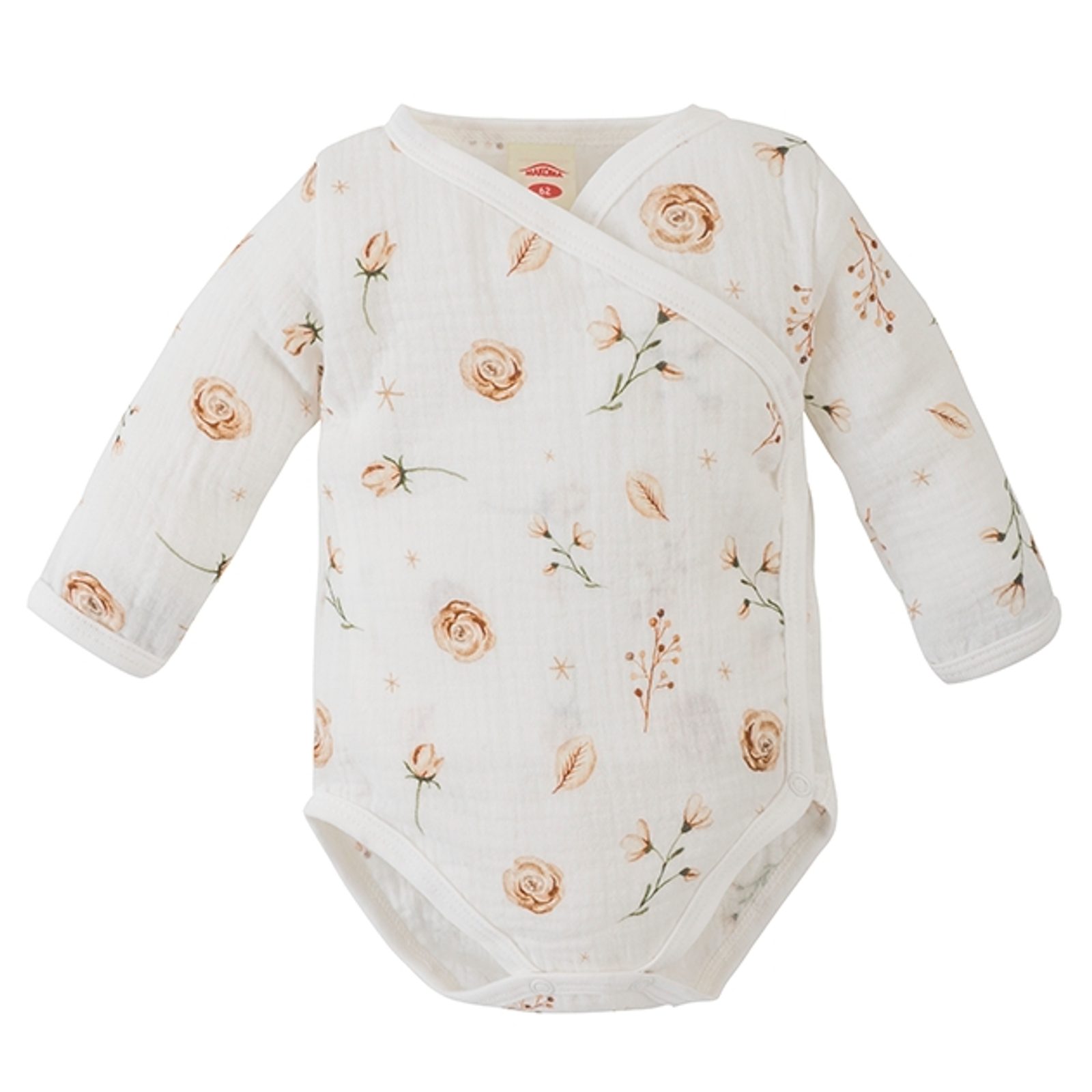 Mušelínové zavinovací body s dlouhým rukávem značky Makoma z prémiové kolekce Just Muslin - vzor Flowers:
