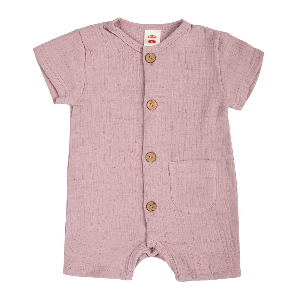 Mušelínový letní overal značky Makoma z kolekce Bamboo v růžové barvě:
