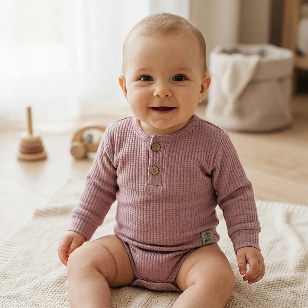 Dětské body s dlouhým rukávem střih "polo" z kolekce Natural Waffel značky Makoma. Barva: PINK (starorůžová).