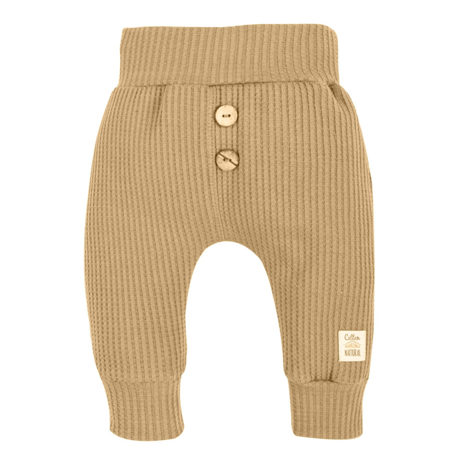 Dětské tepláčky z kolekce Natural Waffel značky Makoma. Barva: CAMEL (béžová "camel").