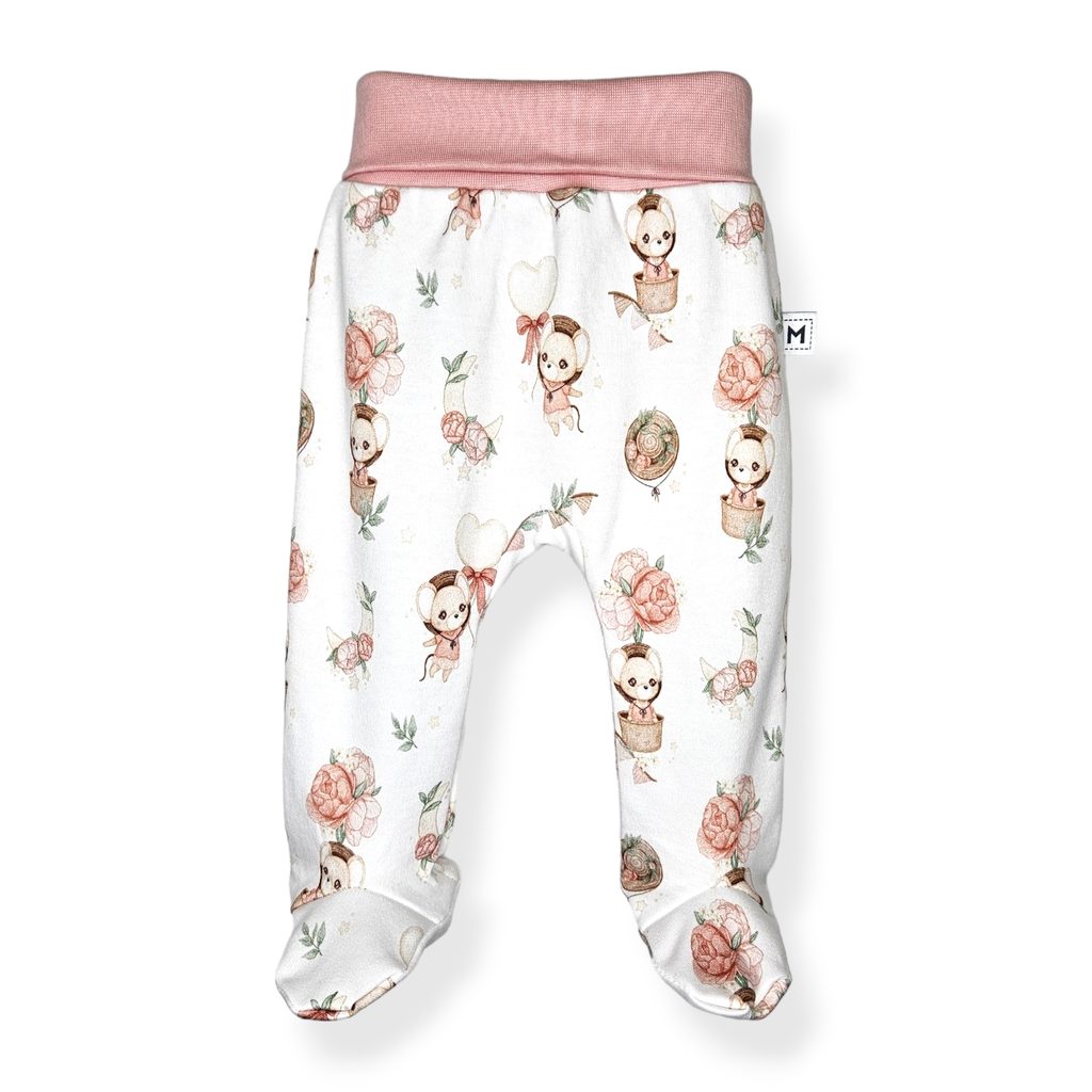 Polodupačky z biobavlny - prémiová řada Pure značky Mrofi - design LITTLE MOUSE/POWDER PINK (pudrově růžová):
