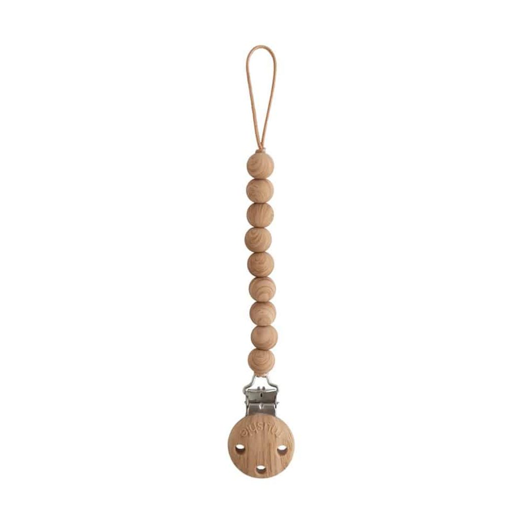 Designový klip na dudlík Hera od Mushie - barevné provedení FAUX WOOD - je spojením nadčasového minimalismu, prémiové kvality a funkčnosti.