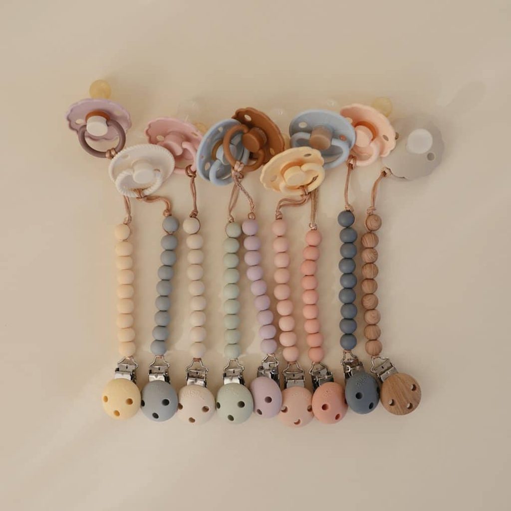 Designový klip na dudlík Hera od Mushie - barevné provedení POWDER PINK - je spojením nadčasového minimalismu, prémiové kvality a funkčnosti.