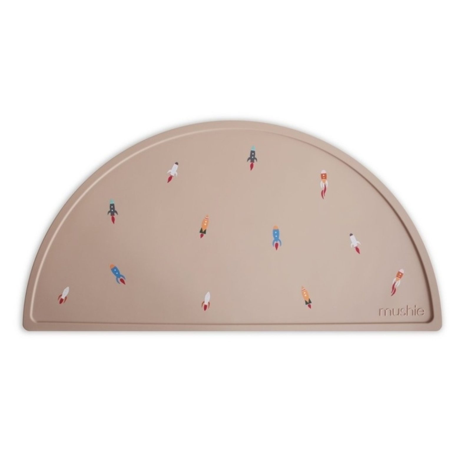 Designové silikonové prostírání vzor ROCKET SHIP od Mushie - je spojením nadčasového minimalismu, prémiové kvality a funkčnosti.