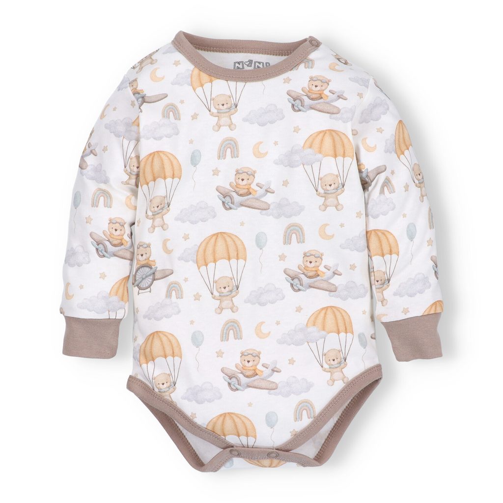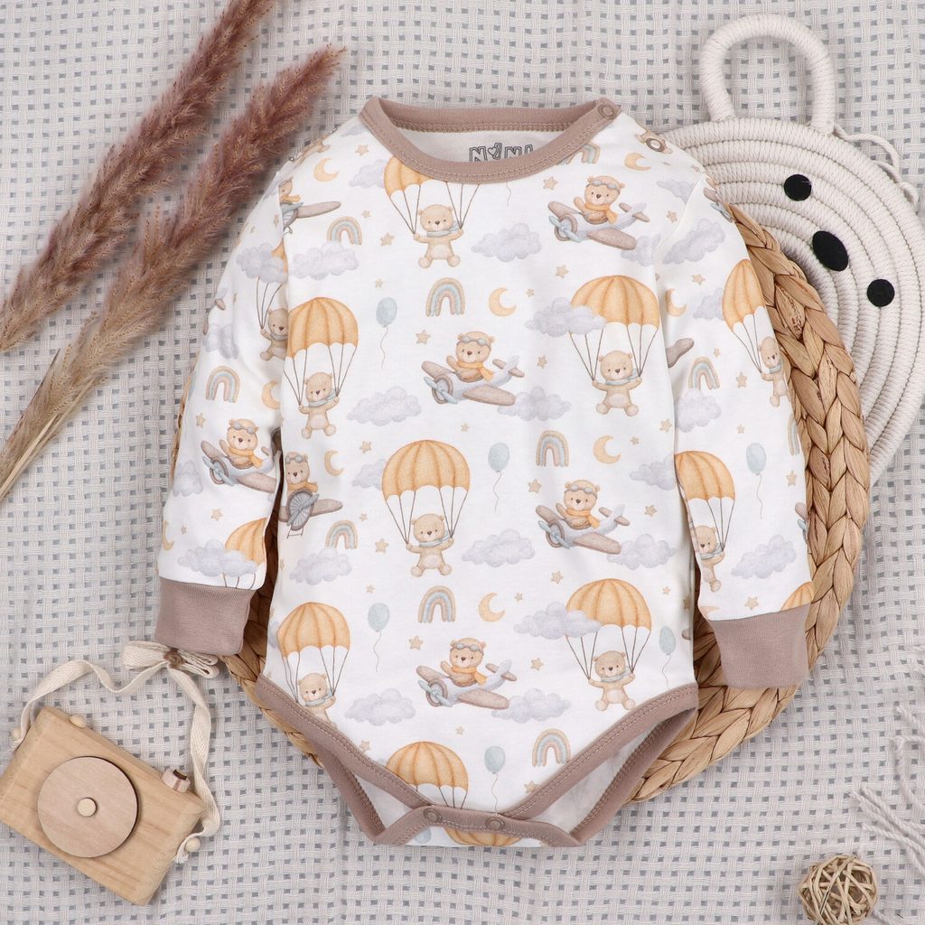 Kojenecké body s dlouhým rukávem z kolekce Méďa Pilot značky NINI. Design: VZOROVANÉ.