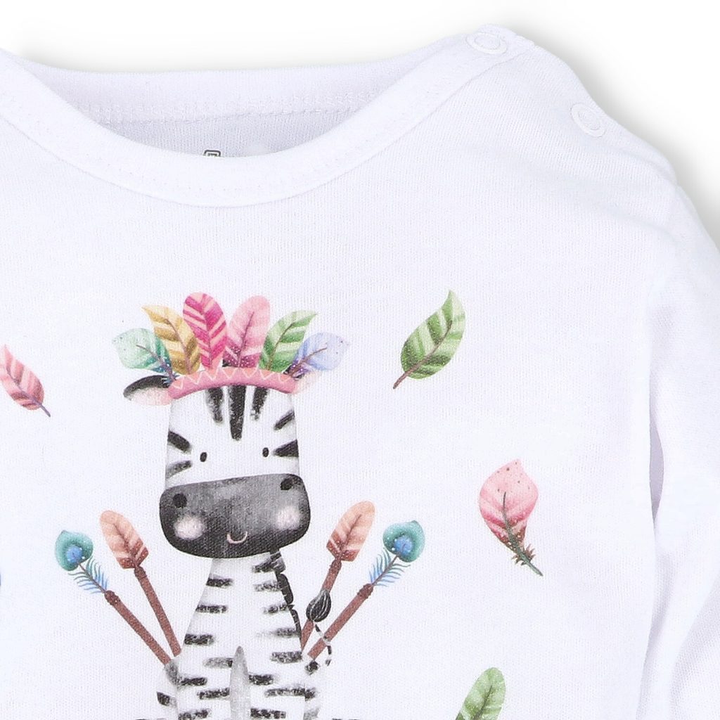 Kojenecké body s dlouhým rukávem z kolekce Zebra značky NINI. Design: BÍLÉ.