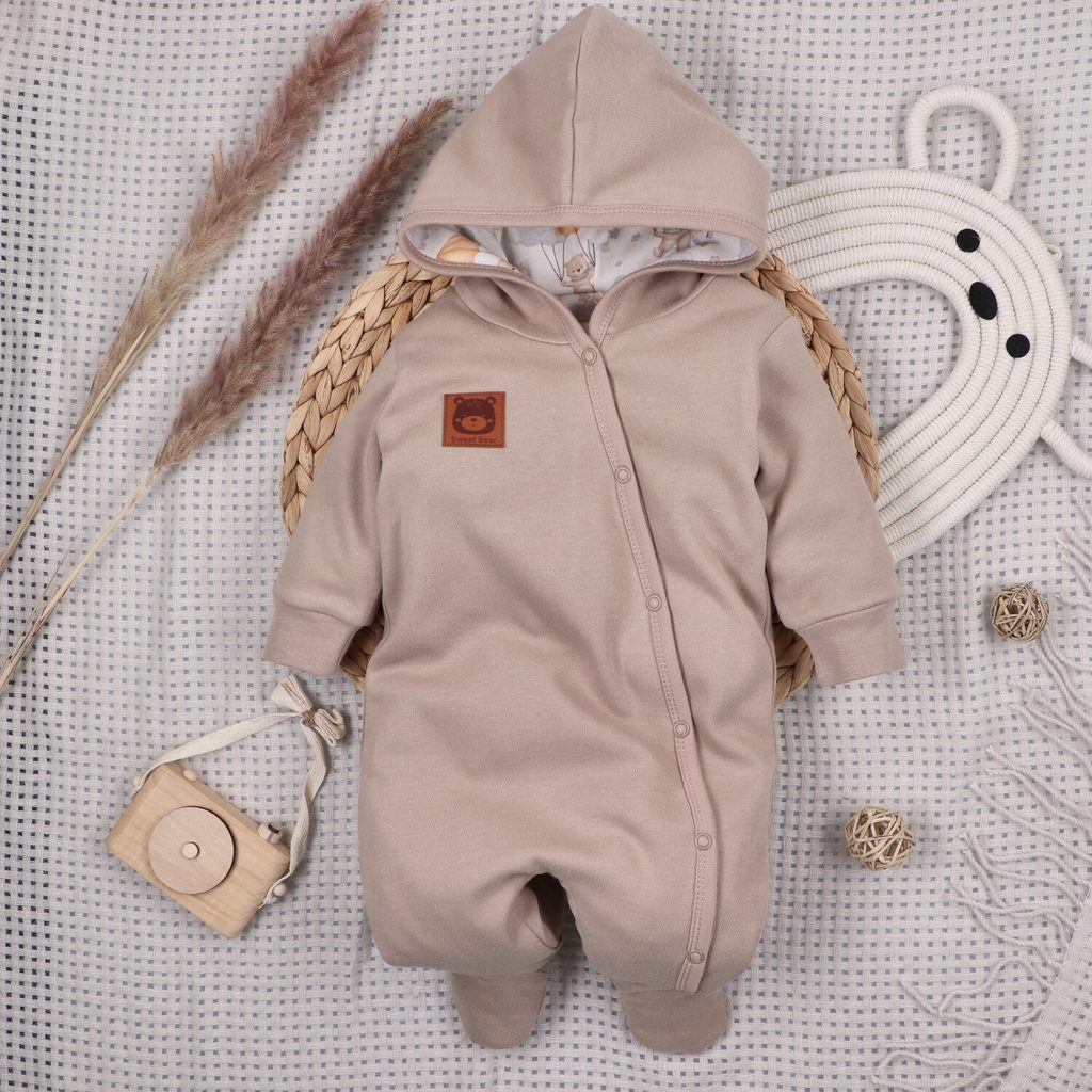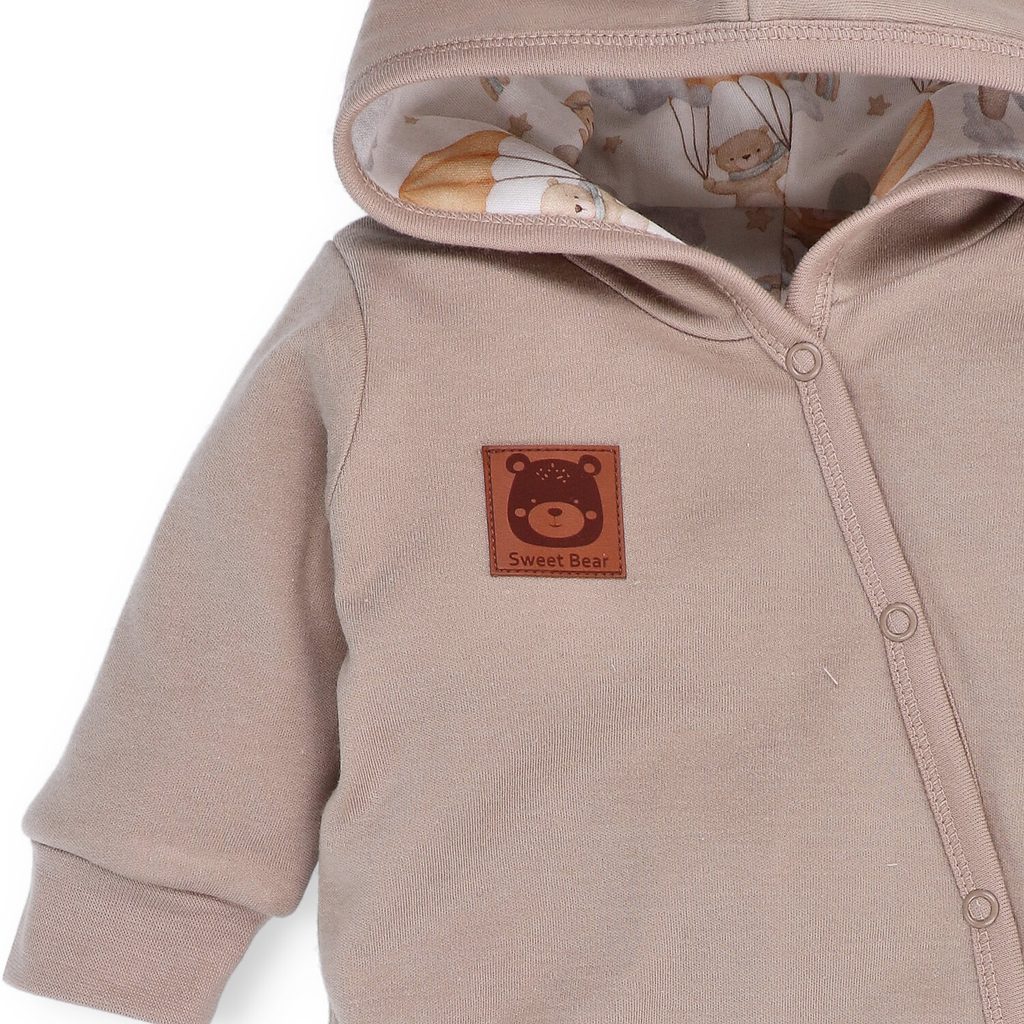 Kojenecká kombinéza pro miminko / overal s kapucí z kolekce Méďa Pilot značky NINI, design: SVĚTLE HNĚDÁ: