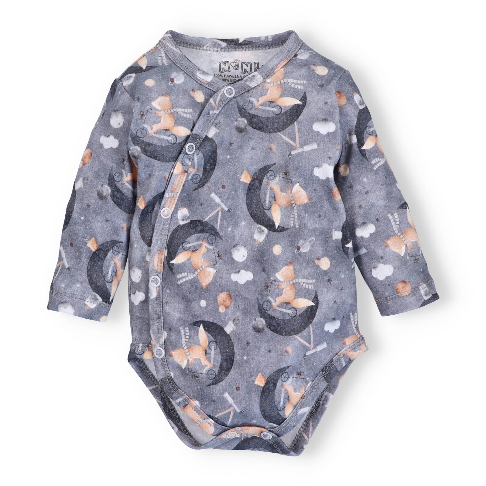 Zavinovací body s dlouhým rukávem z kolekce Space Tour značky NINI. Design: celopotištěné pohádkovým vzorem.