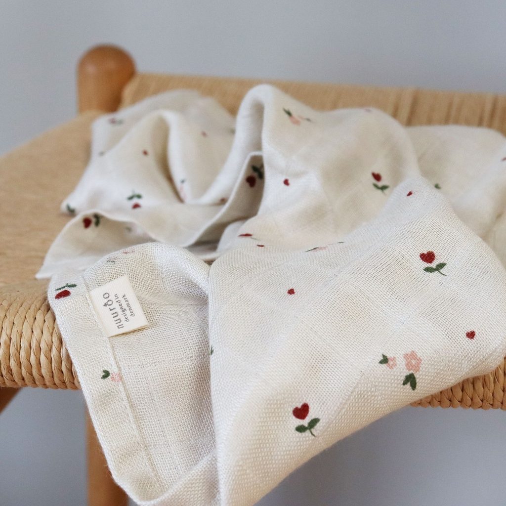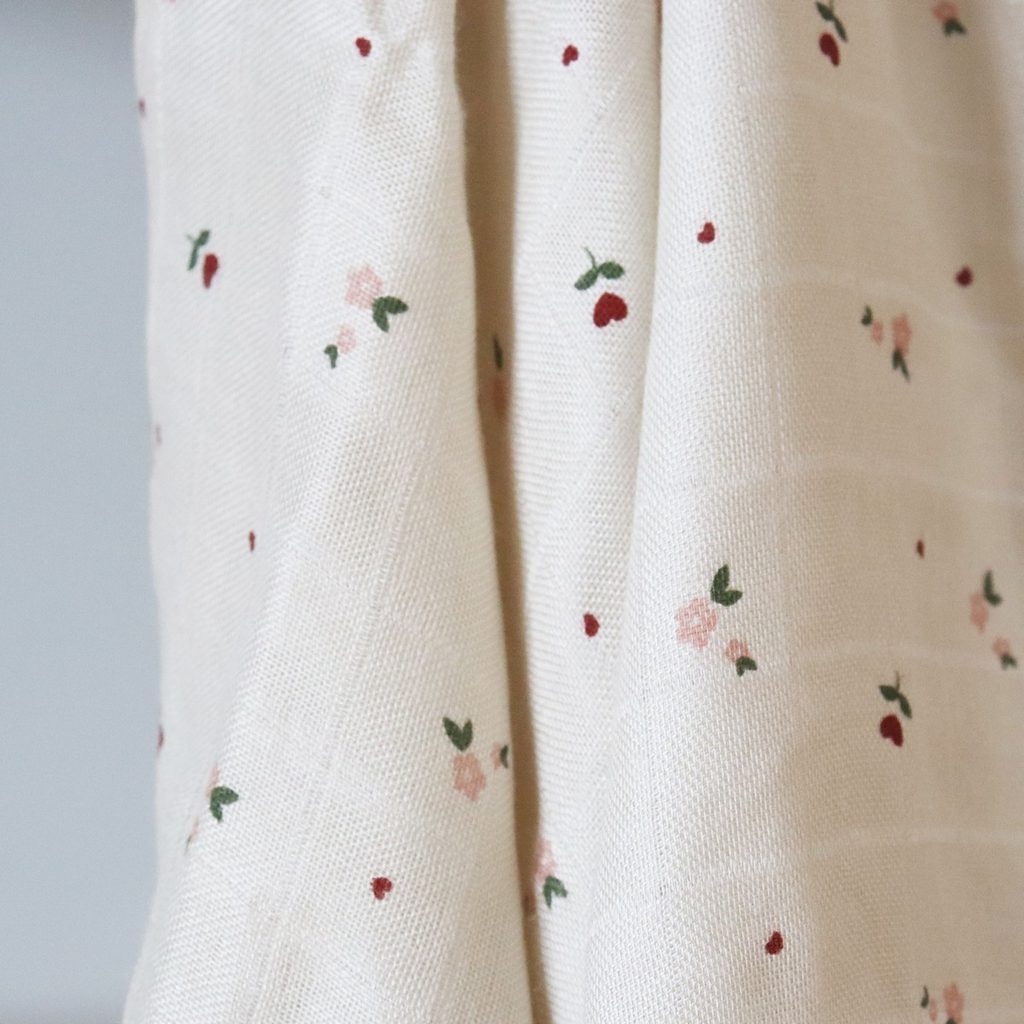 Mušelínové plenky z bambusu 2ks dánské značky NUUROO z řady Josephine - design Flower Love (růžové a červené kytičky na béžovém podkladu):