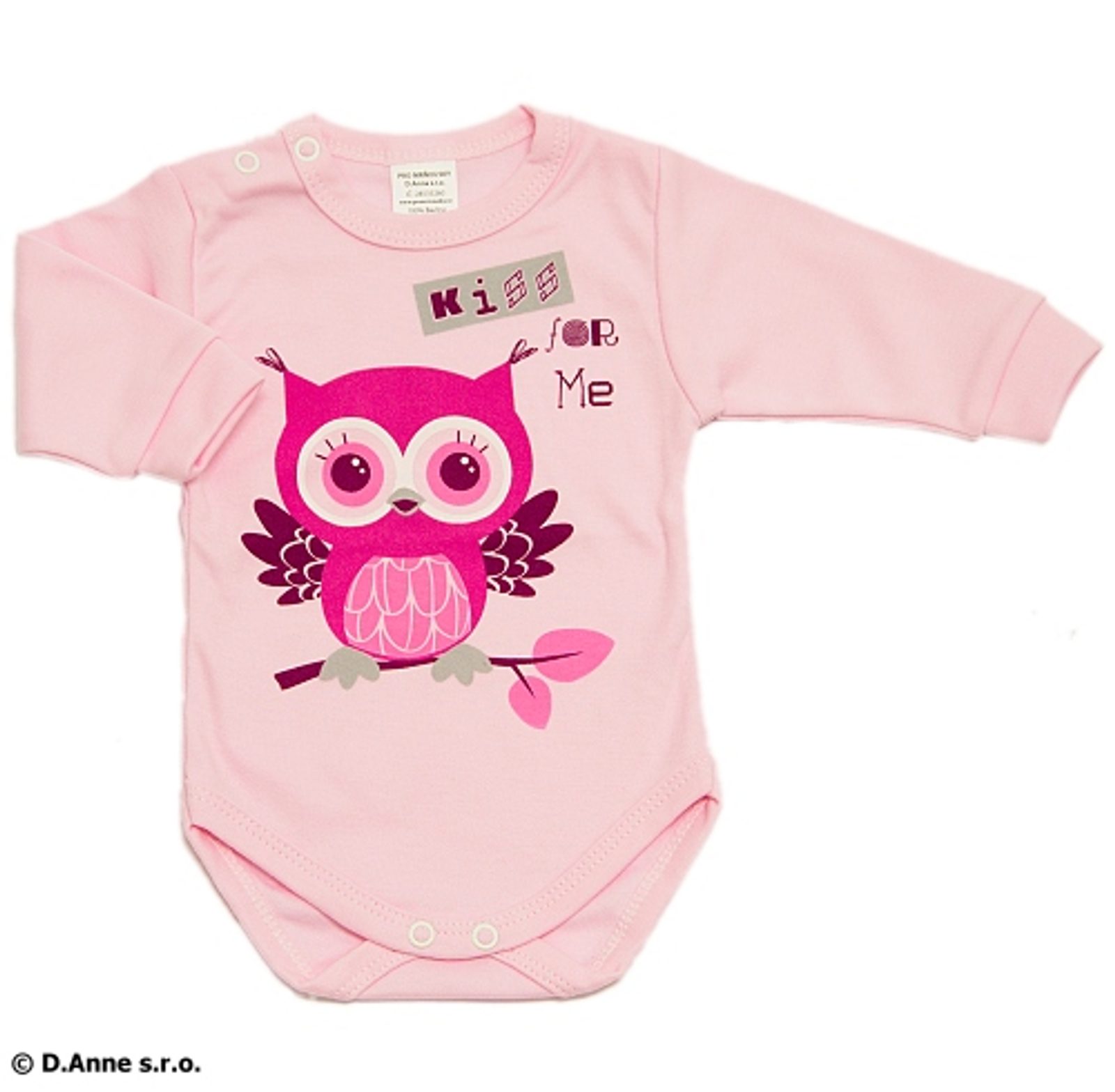 Kojenecké body s dlouhým rukávem PRO MRŇOUSKY s potiskem kolekce SOVIČKA, v RŮŽOVÉ barvě. Vyrobené ze 100% bavlny. Kojenecké body s dlouhým rukávem má: