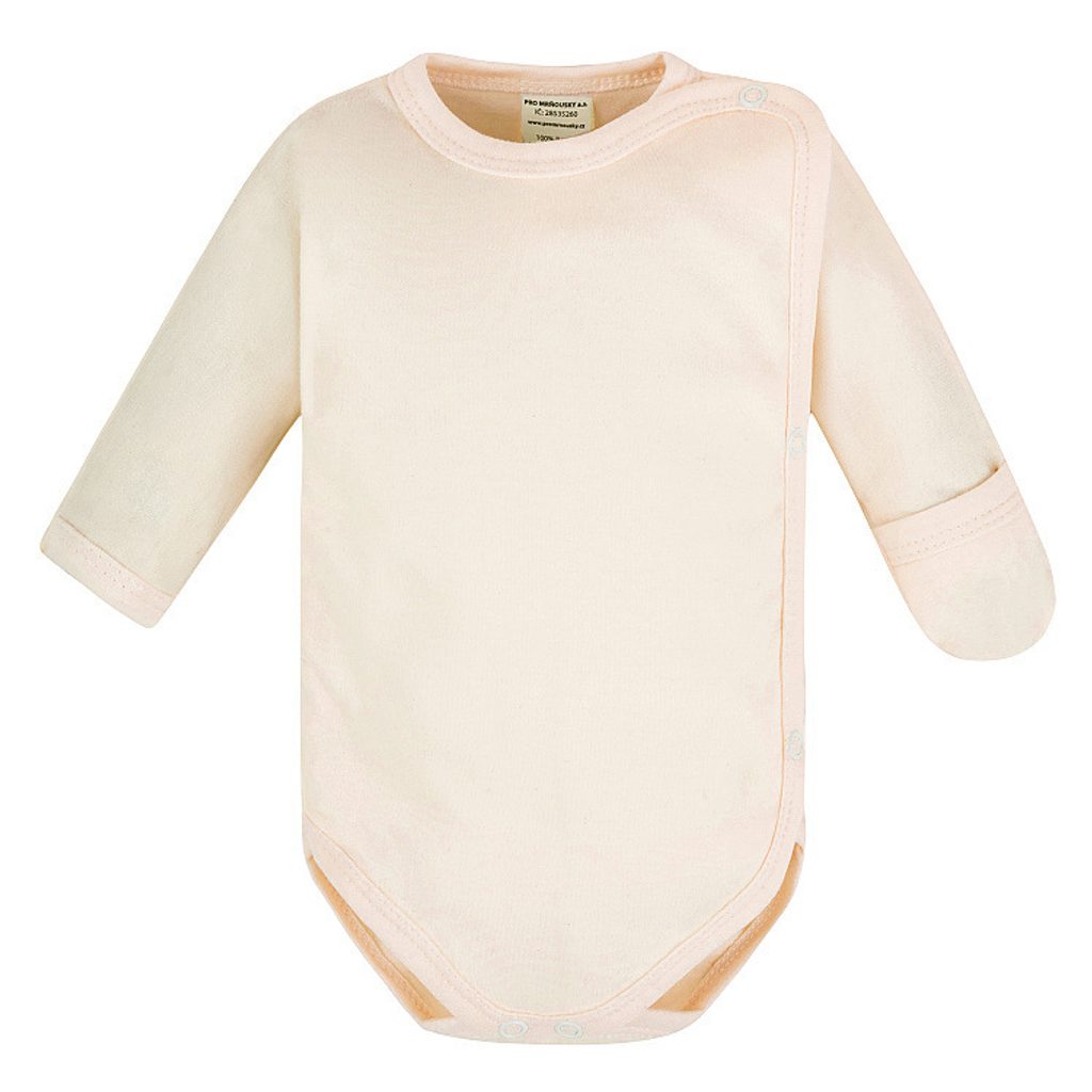 Kojenecké body zavinovací (střih kimono) s rukavičkami 2v1 v BÉŽOVÉ barvě - je vychytávkou pro malá miminka, pomocí které definitivně vyřešíte problém s věčným padáním "protiškrábacích" rukaviček. Součástí střihu konce jeho rukávů jsou rukavičky - pouhým otočením konce rukávu můžete body používat s či bez rukaviček - a to dle aktuální potřeby. Body je vyrobeno ze 100% bavlny.
