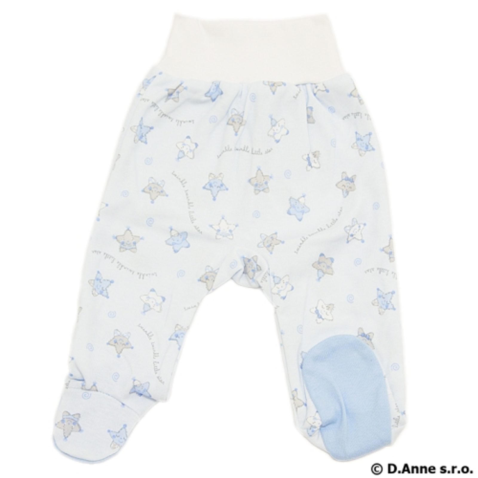 Kojenecké polodupačky PRO MRŇOUSKY z potiskové kolekce HVĚZDIČKY, v MODRÉ barevné kombinaci (tj. modré hvězdičky na světlounce modrém základu). Vyrobené ze 100% bavlny. Polodupačky mají: široký pružný pas z bavlněného nápletu - který je pružný, netlačí, avšak dobře drží. „ťapičky“ - kryjí…