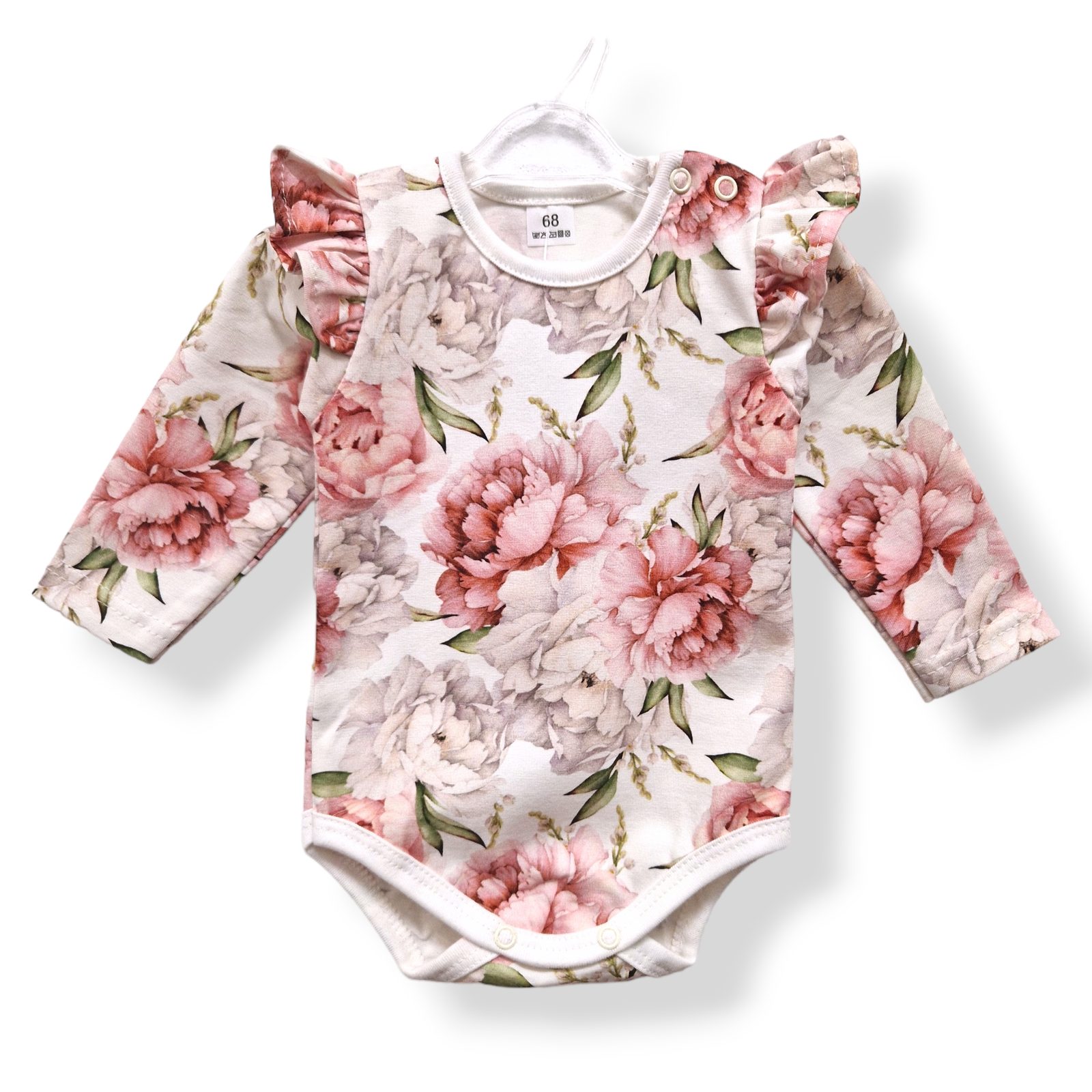 Le Bebe Body dlouhý rukáv s volánky Pivoňky