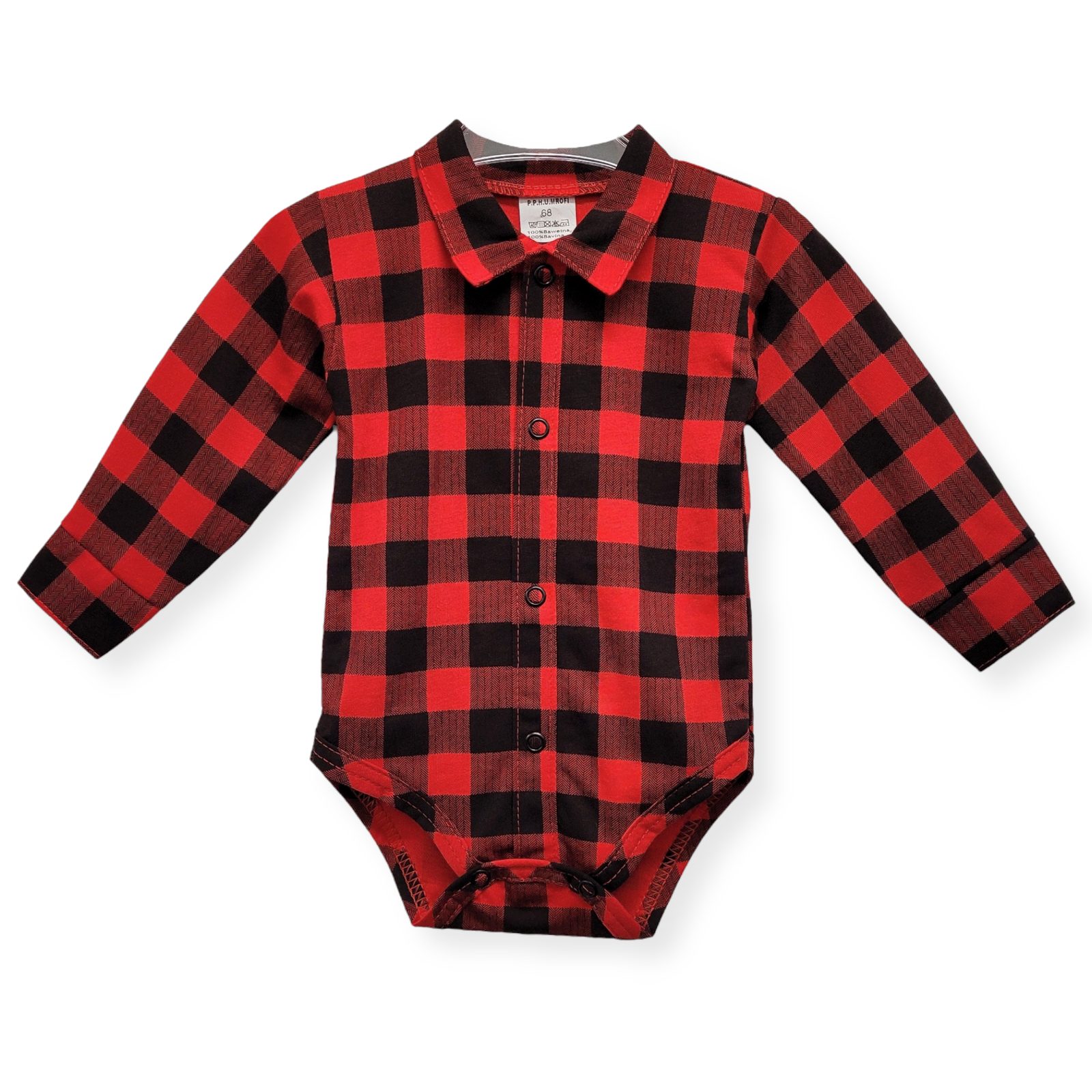 Stylové kojenecké body "košile" kostkovaná značky Mrofi - design: ČERNO-ČERVENÁ,